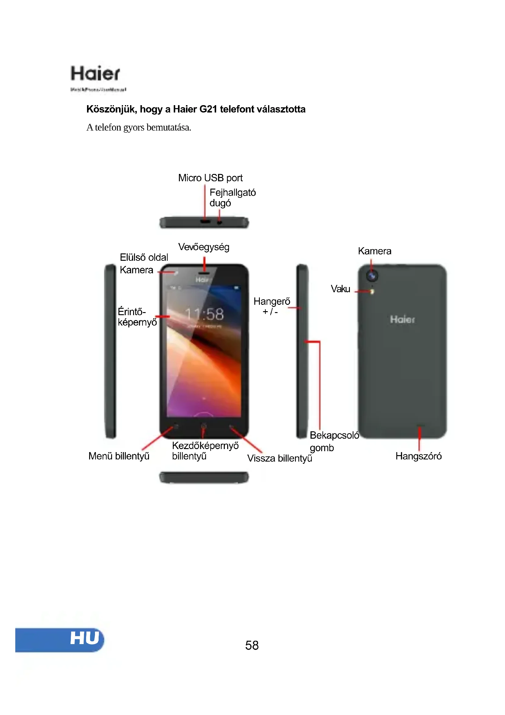 PLKöszönjük, hogy a Haier G21 telefont választotta A telefon gyors bemutatása.