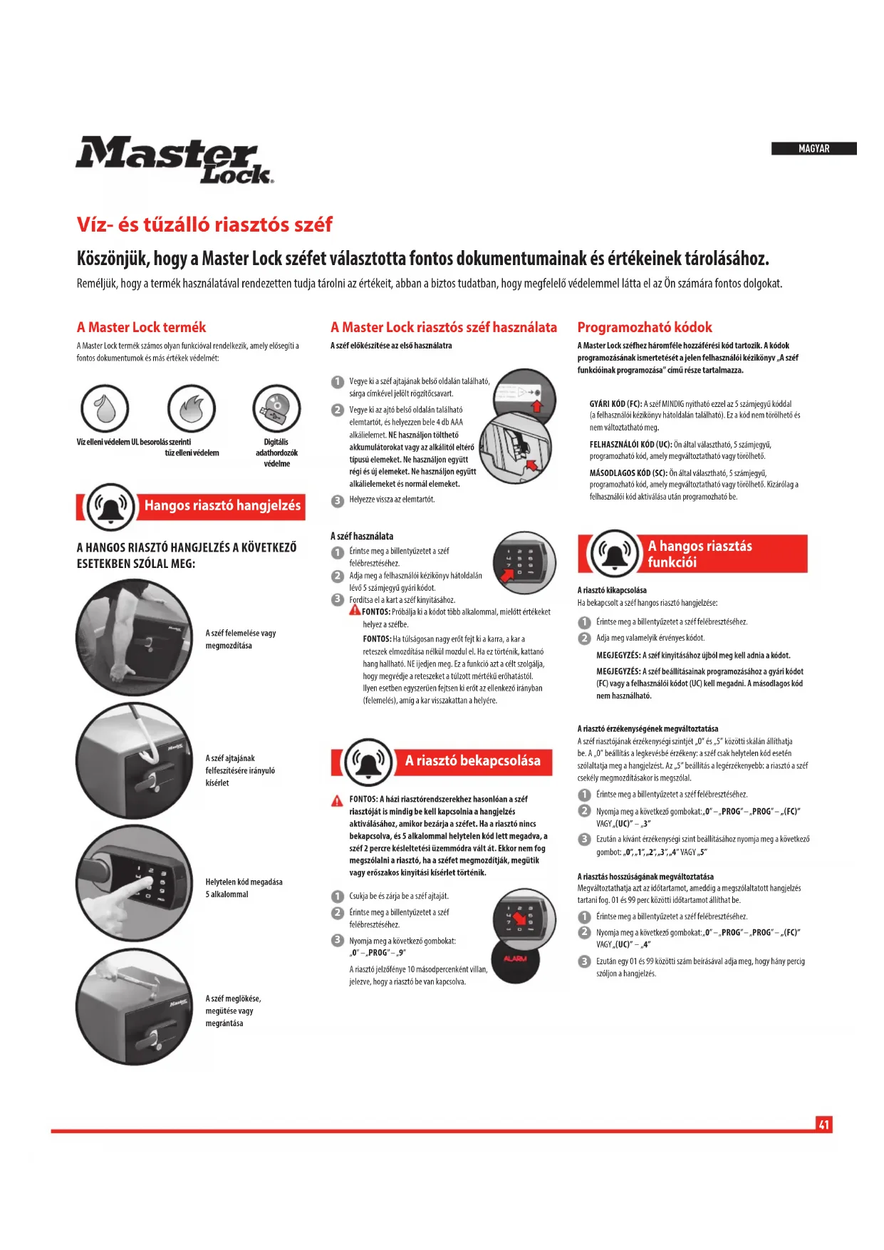 Köszönjük, hogy a Master Lock széfet választotta fontos dokumentumainak és értékeinek tárolásához.