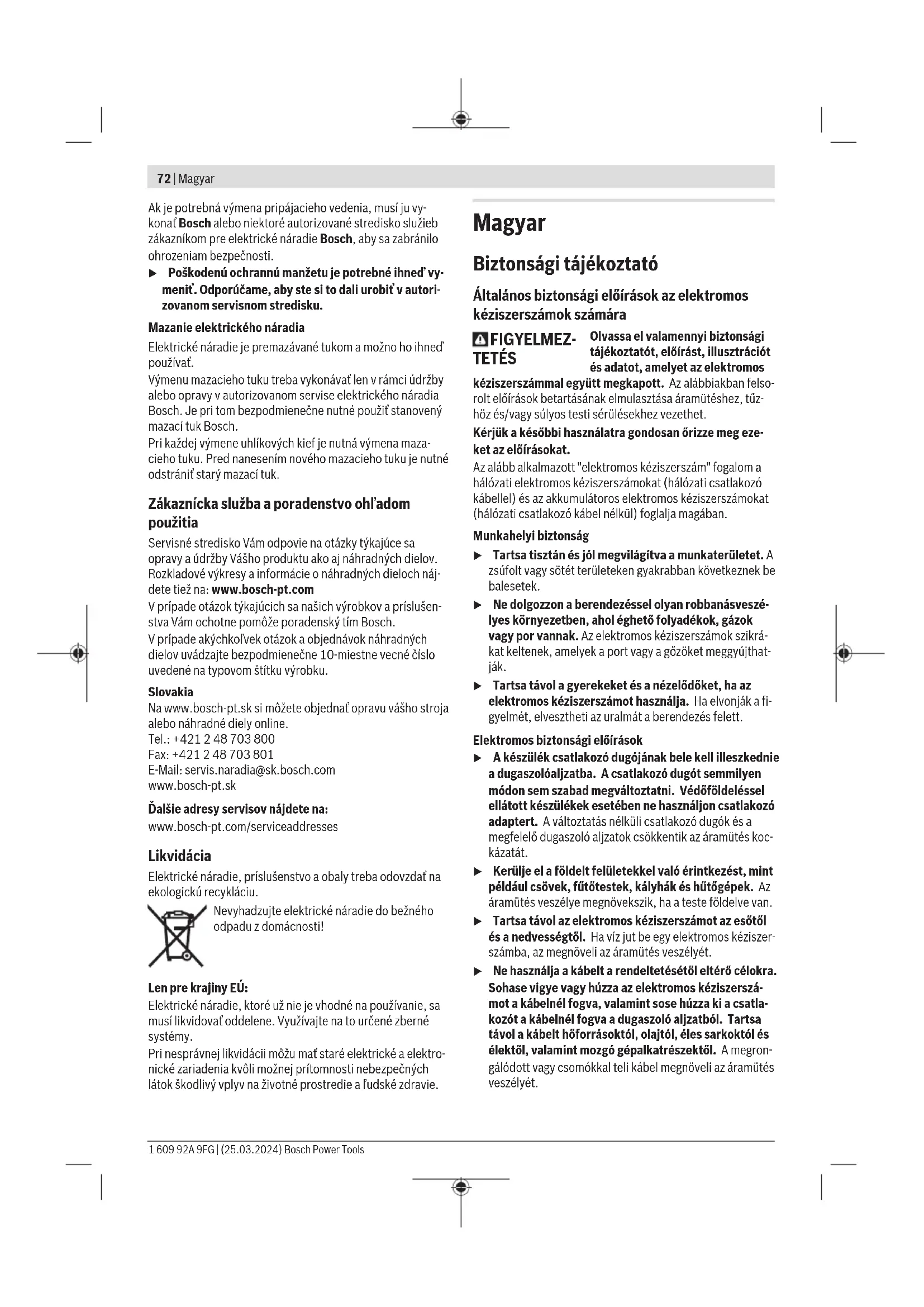 EU konformitási nyilatkozat Egyedüli felelőséggel kijelentjük, hogy a megnevezett termékek megfelelnek az alábbiakban felsorolásra kerülő irányelvek és rendeletek valamennyi idevágó előírásainak és megfelelnek a következő szabványoknak. Vésőkalapács Cikkszám Bosch Power Tools 1 609 92A 9FG | (25.03.2024)II
