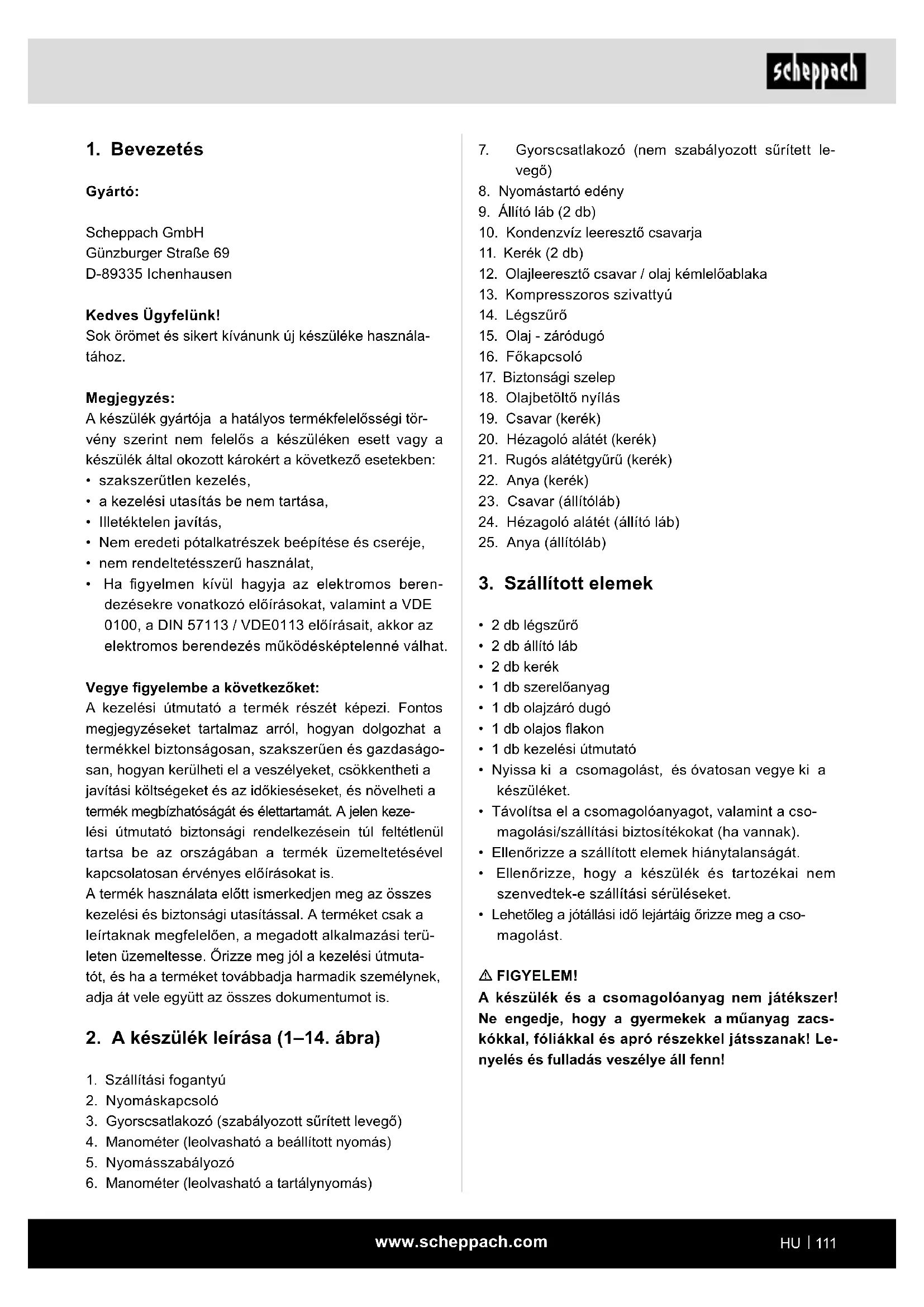 Figyelem! Az üzembe helyezés előtt feltétlenül szerelje össze tel- jesen a készüléket!www.scheppach.com