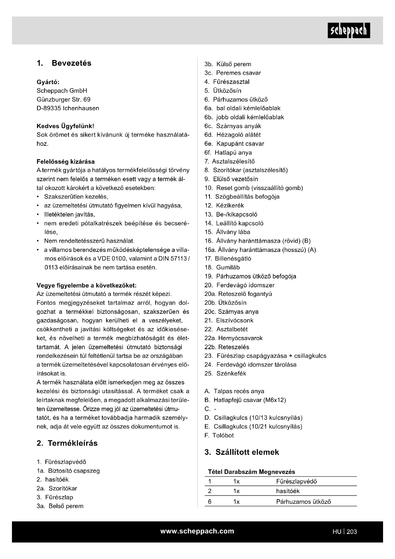 Találja meg az eszköz kézikönyvét ingyenesen HS105 SCHEPPACH PDF formátumban.