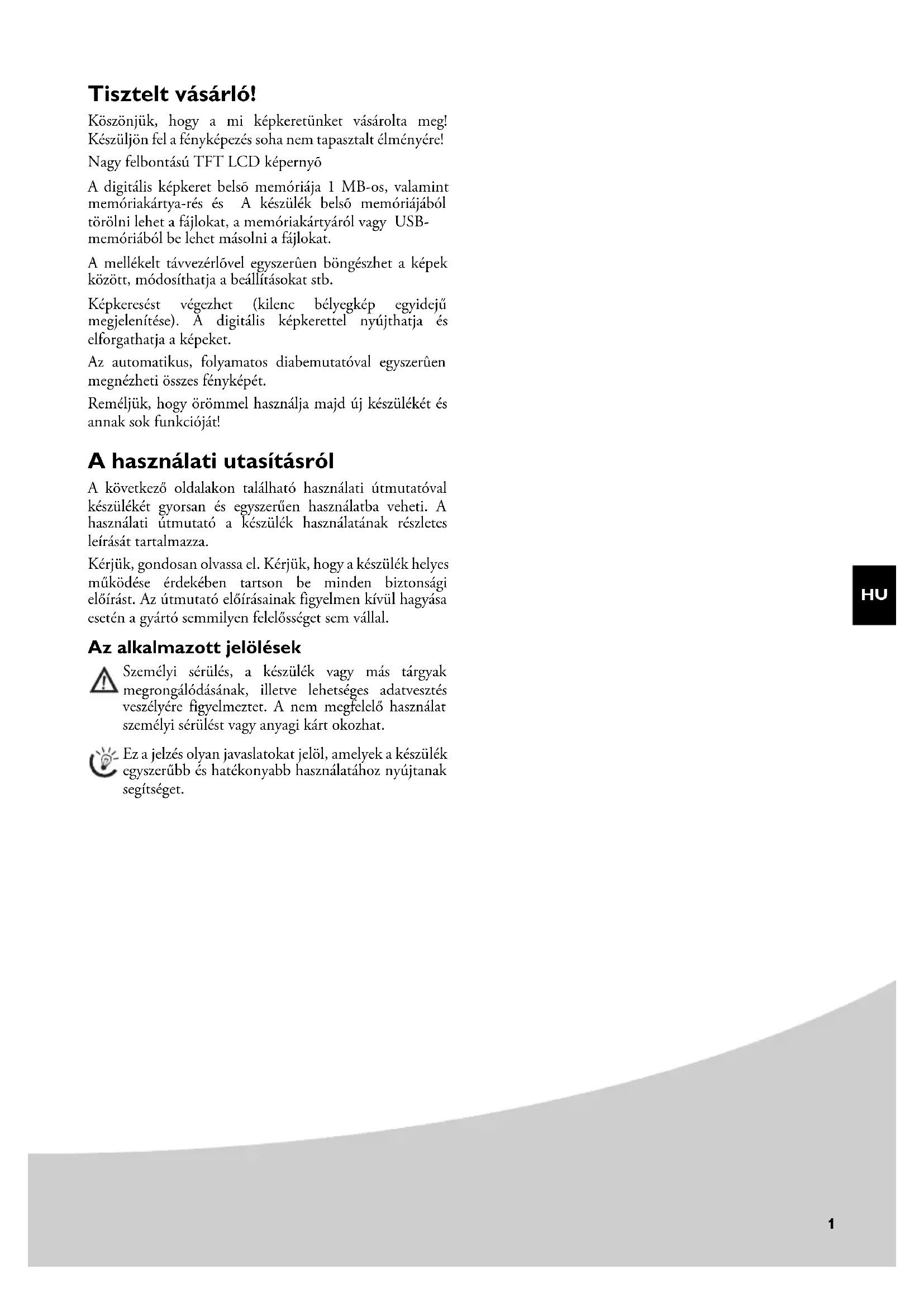 Kérjuk, gondosan olvassa el. Kérjuk, hogy a keszülék helyes muködese erdekében tartson be mindedBiztonsagi cloirast. Az utmutató cloirasainak figyclmen kivül hagyasa eseten a gyarto semmilyen felelosseget sem vallal.