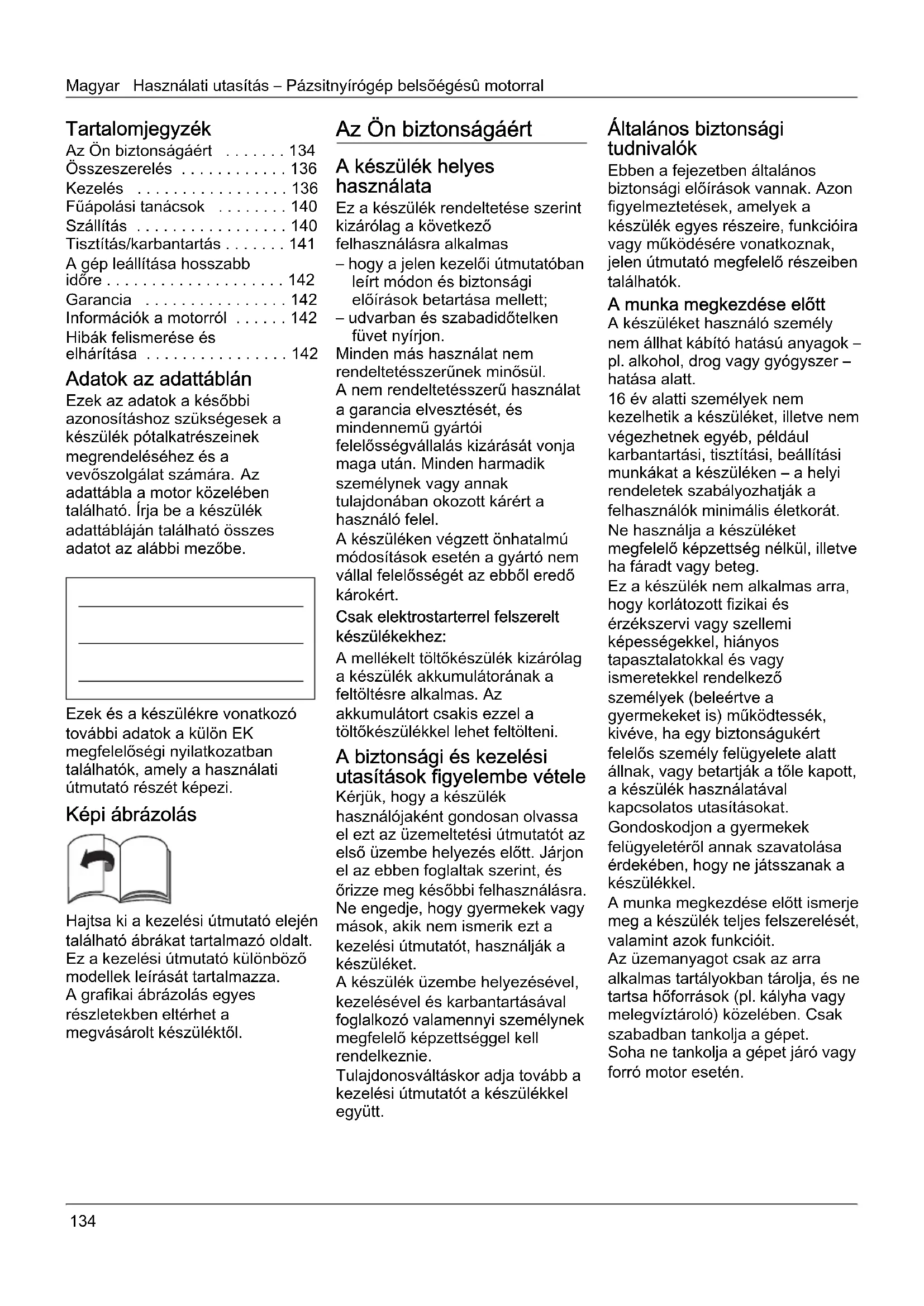 | Karbantart e1s e9s jav edt e1s | Rendszeresen ellen51rizze a motorolaj szintj e9t, tiszt edtsa meg a gy71jt51kosarat minden haszn e1lat ut e1n, e9lezze meg a peng e9ket legal e1bb szezononk e9nt egyszer. |