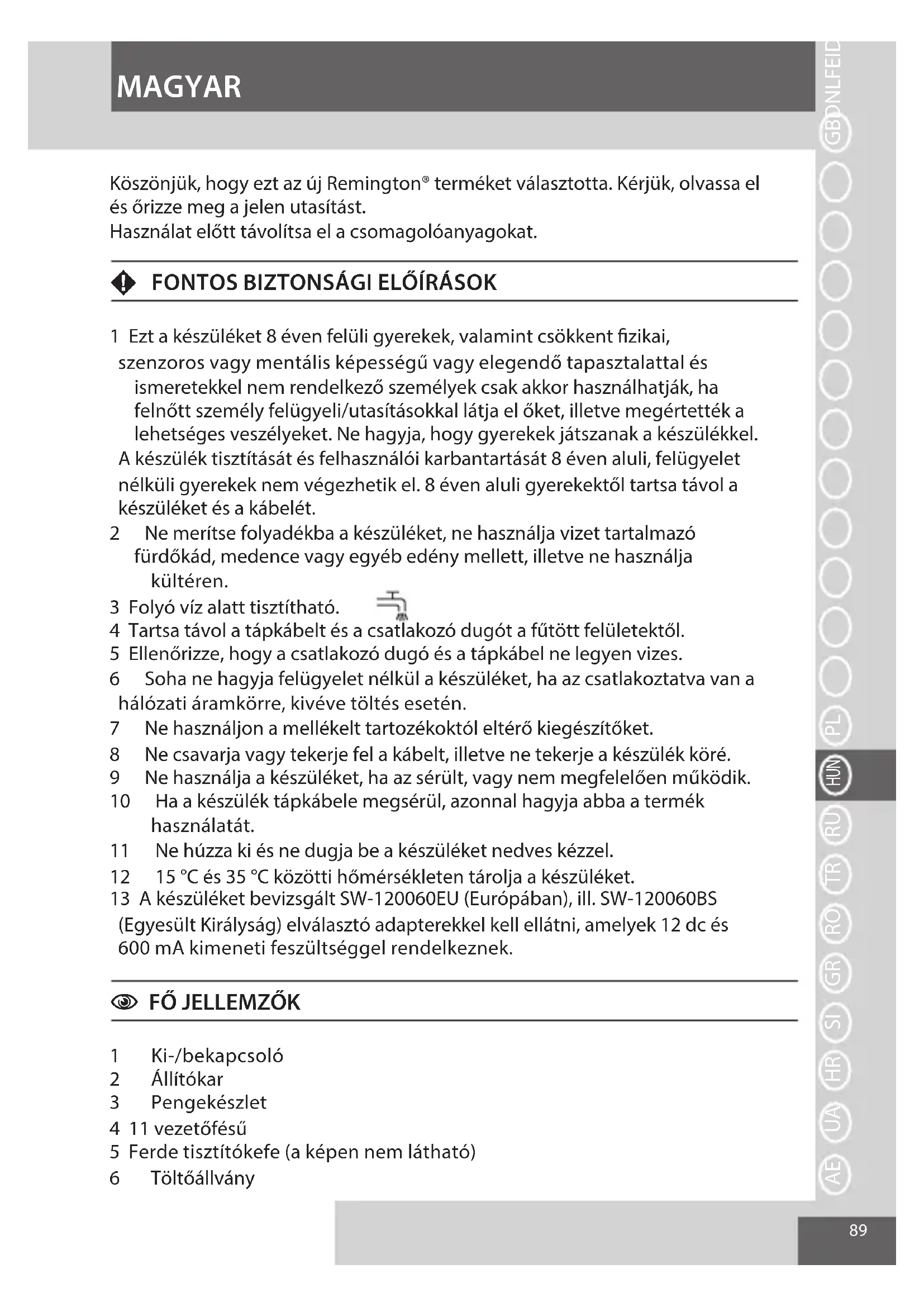Köszönjük, hogy ezt az új Remington® terméket választotta. Kérjük, olvassa el és őrizze meg a jelen utasítást.