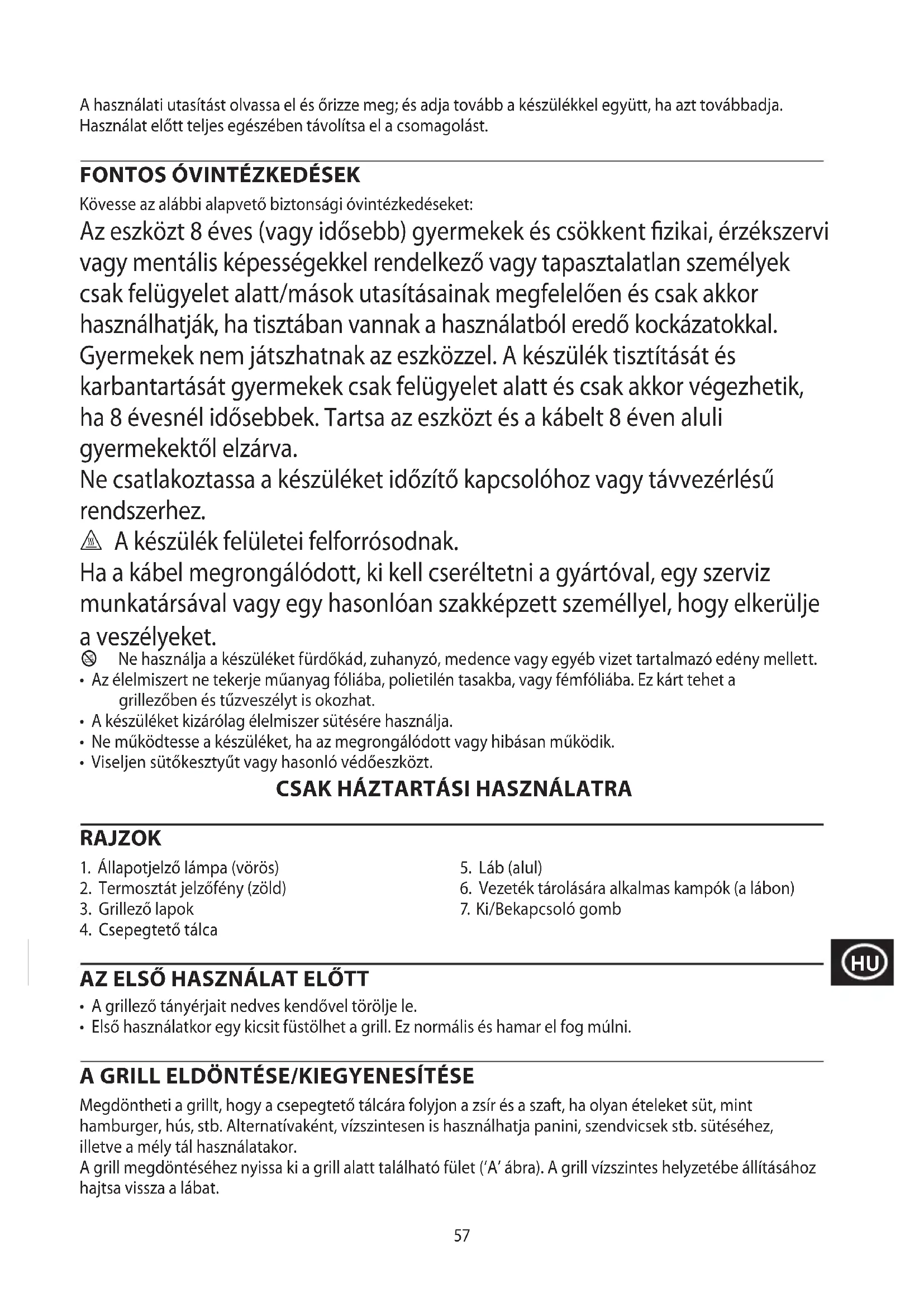 | Haszn lat | Kiv l alkalmas h s k, z lds gek s halak grillez s re, egyszer71 kezel51fel let |