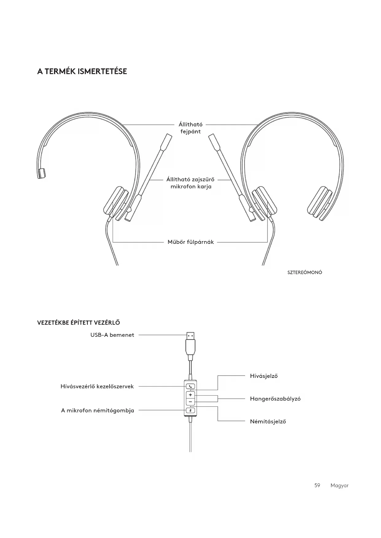 MONÓ 1 Mikrofonos fejhallgató vezetékbe épített vezérlővel ésUSB-A-csatlakozóval 2 Felhasználói útmutató SZTEREÓ 1 Mikrofonos fejhallgató vezetékbe épített vezérlővel és USB-A-csatlakozóval 2 Felhasználói útmutató USB-A USB-A