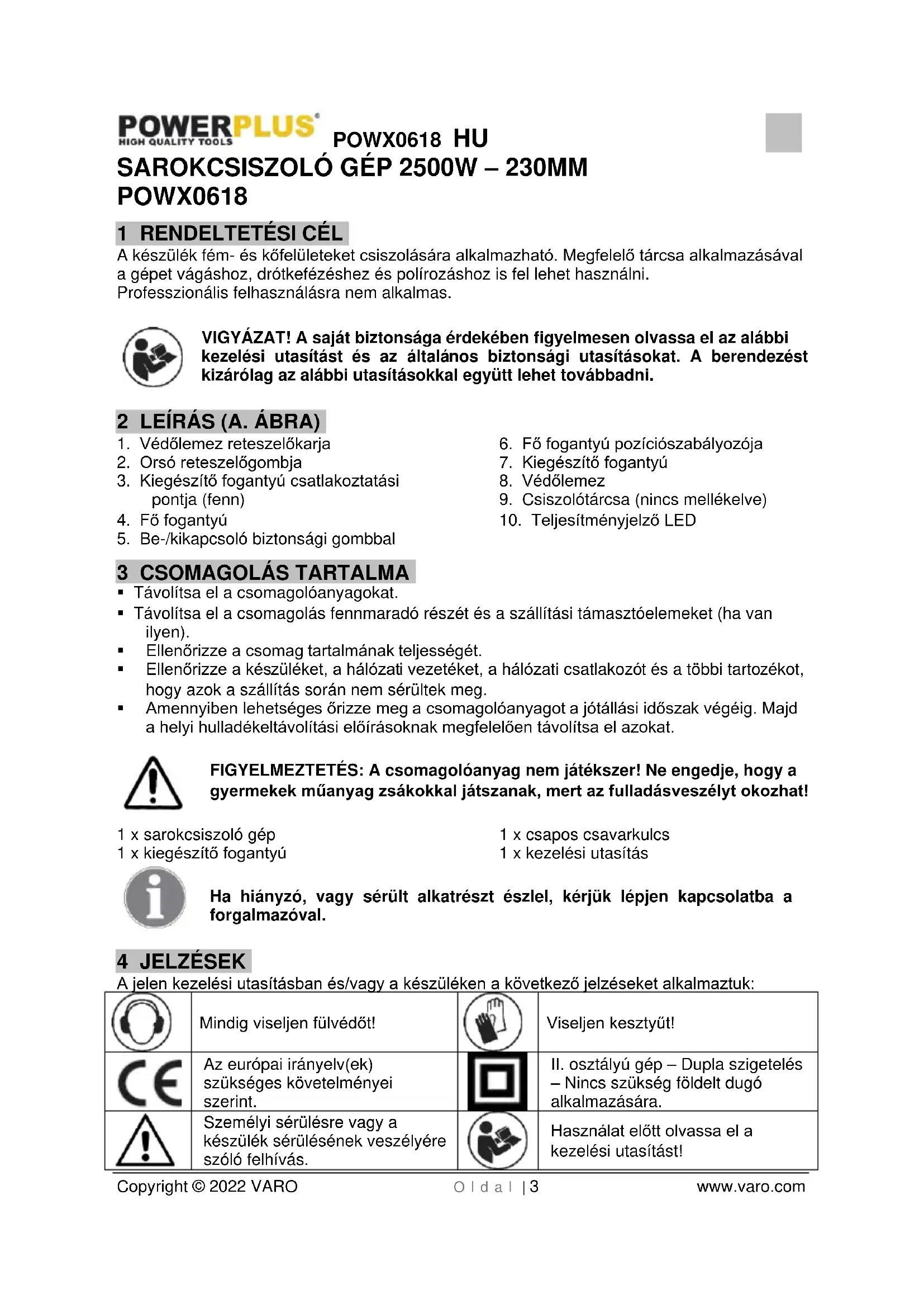 Használat előtt olvassa el a kezelési utasítást!POWX0618 HU Copyright © 2022 VARO O l d a l | 4 www.varo.com