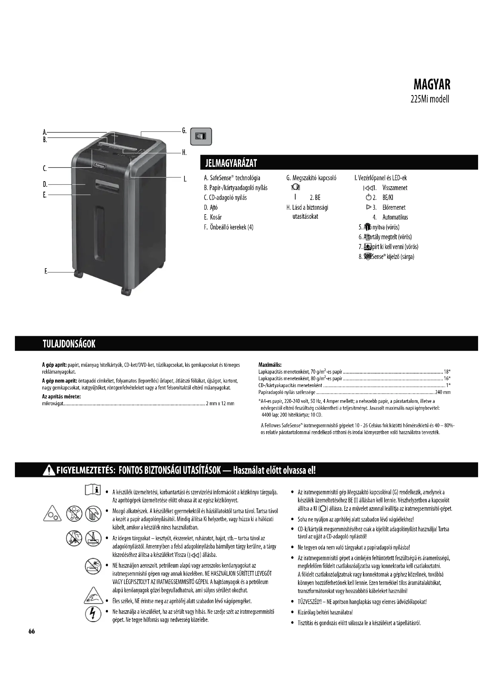 HASZNÁLATI ÚTMUTATÓ Powershred 225Mi FELLOWES