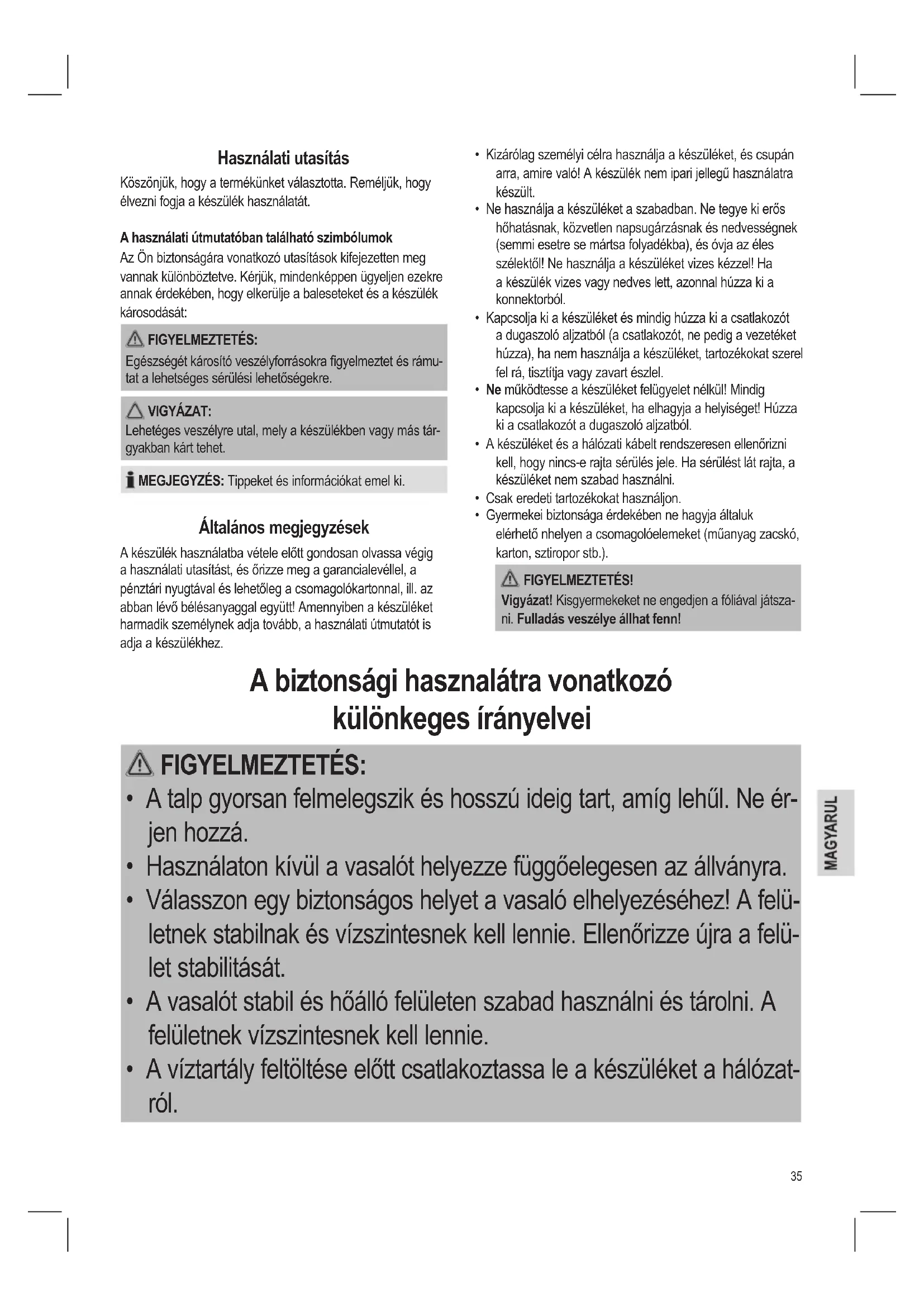 - A vasalót nem szabad felügyelet nélkül hagyni miközben csatla- koztatva van a hálózathoz.