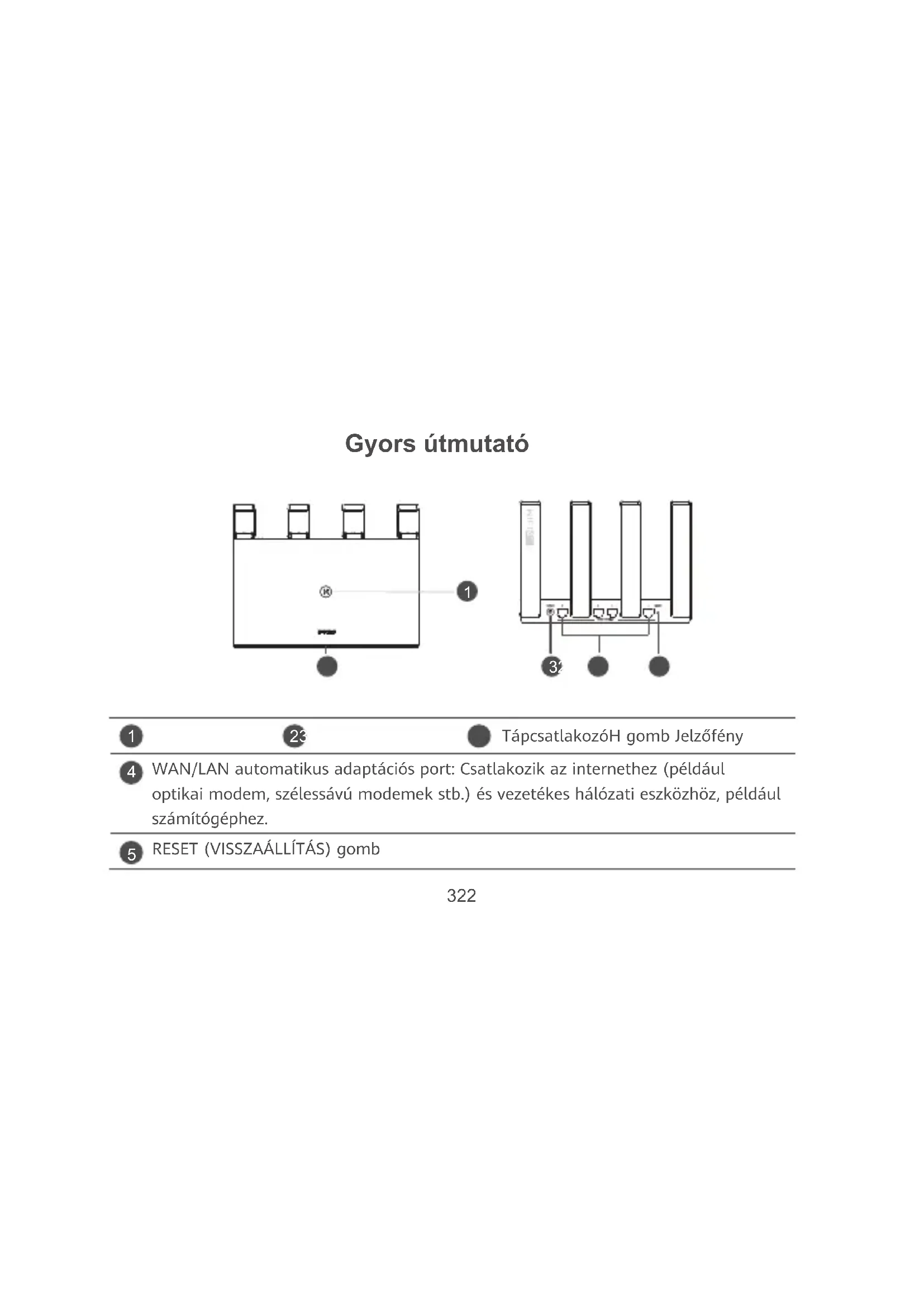 RESET (VISSZAÁLLÍTÁS) gomb322 323 POWER LAN PON RESET