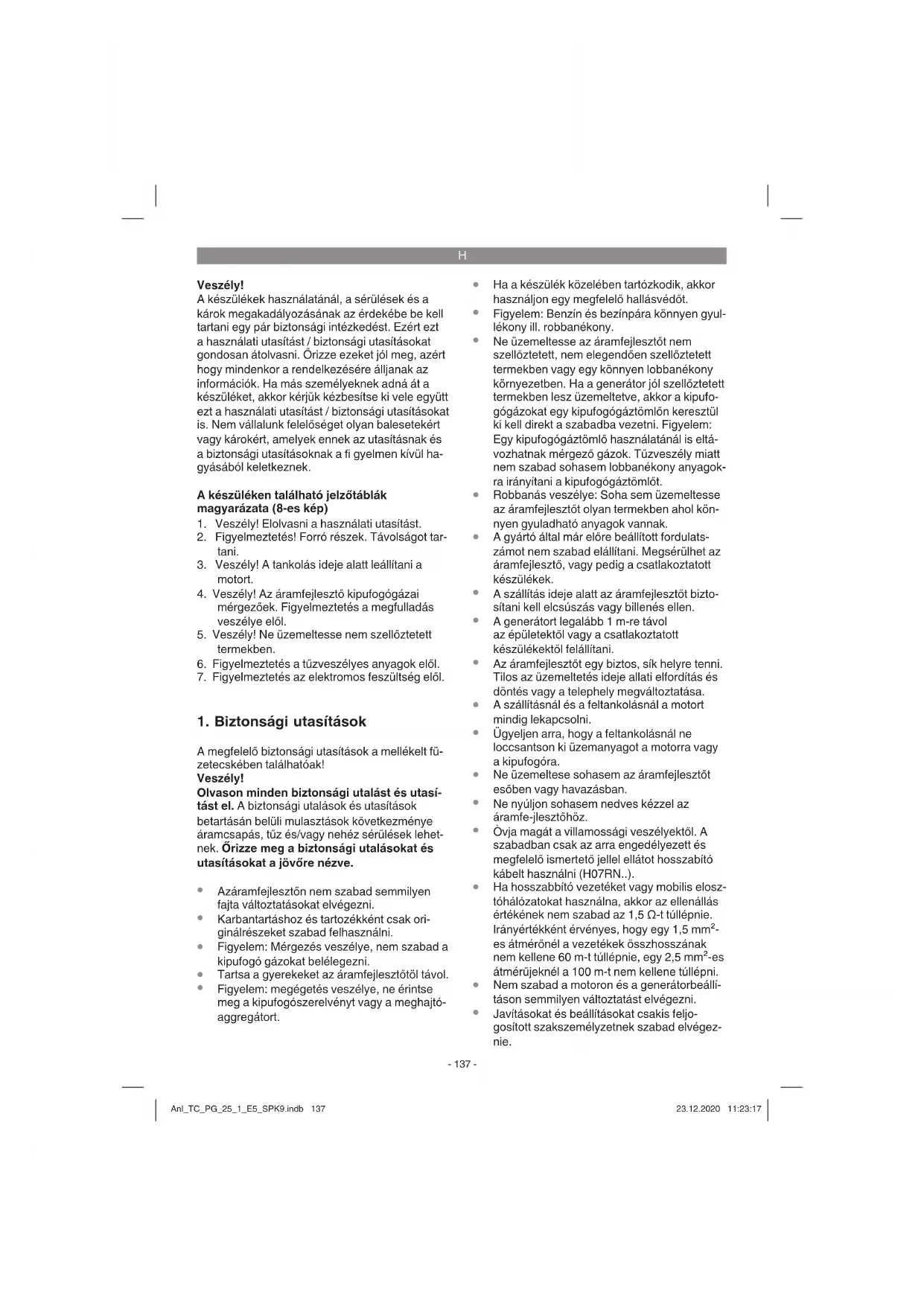 Javításokat és beállításokat csakis feljo- gosított szakszemélyzetnek szabad elvégez- nie. Anl_TC_PG_25_1_E5_SPK9.indb 137Anl_TC_PG_25_1_E5_SPK9.indb 137 23.12.2020 11:23:1723.12.2020 11:23:17H