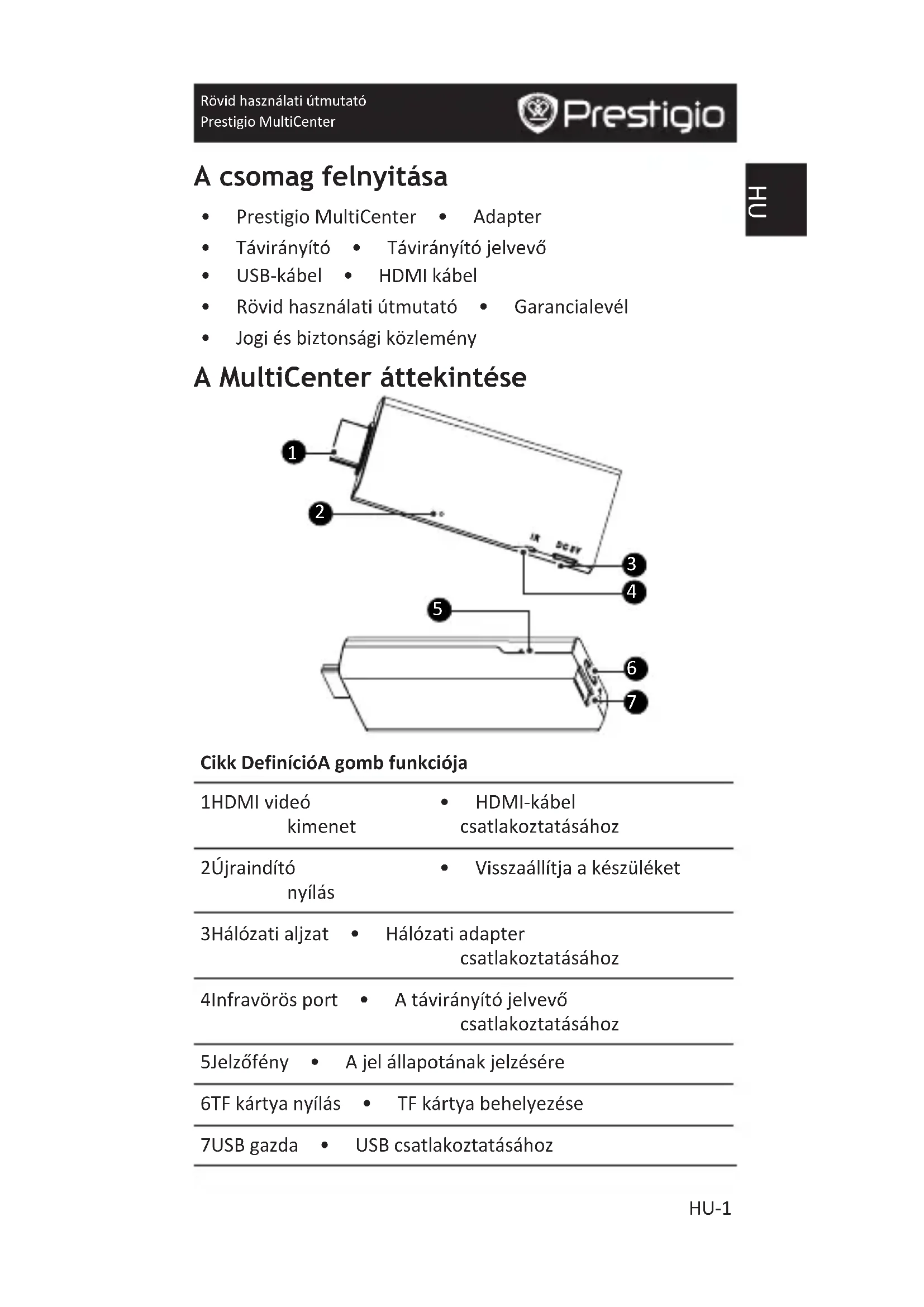 - Azeszközelsőhasználatakor (vagyazösszesfelhasználótestreszabottbeállításainak visszaállításaután)azeszközautomatikusanelindítjaaz Előkészítővarázslót. PAD2411 QSG.indd 49 2013/12/16 15:35:15HU Rövid használati útmutató Prestigio MultiCenter HU-4