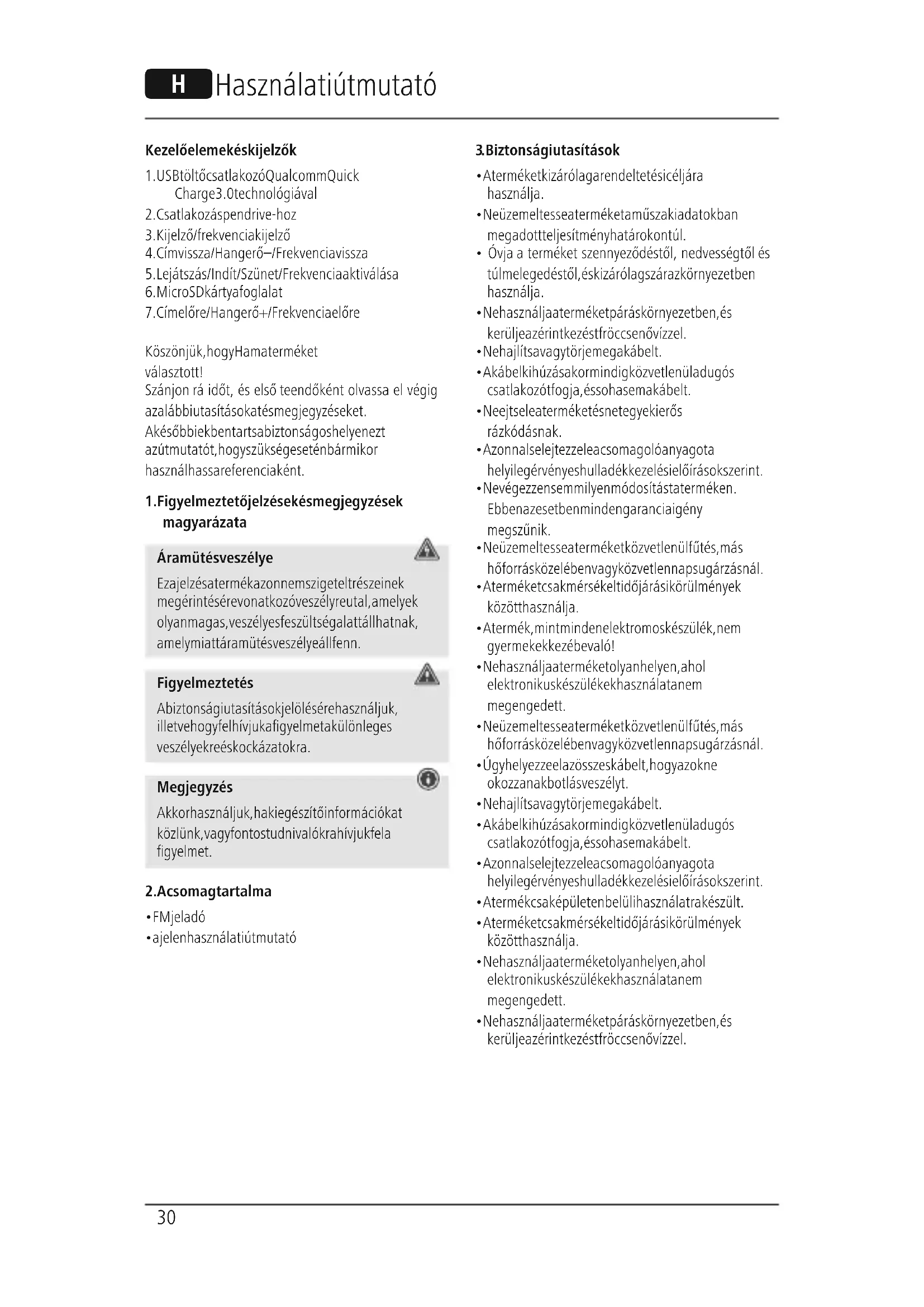 1. Figyelmeztető jelzések és megjegyzések
