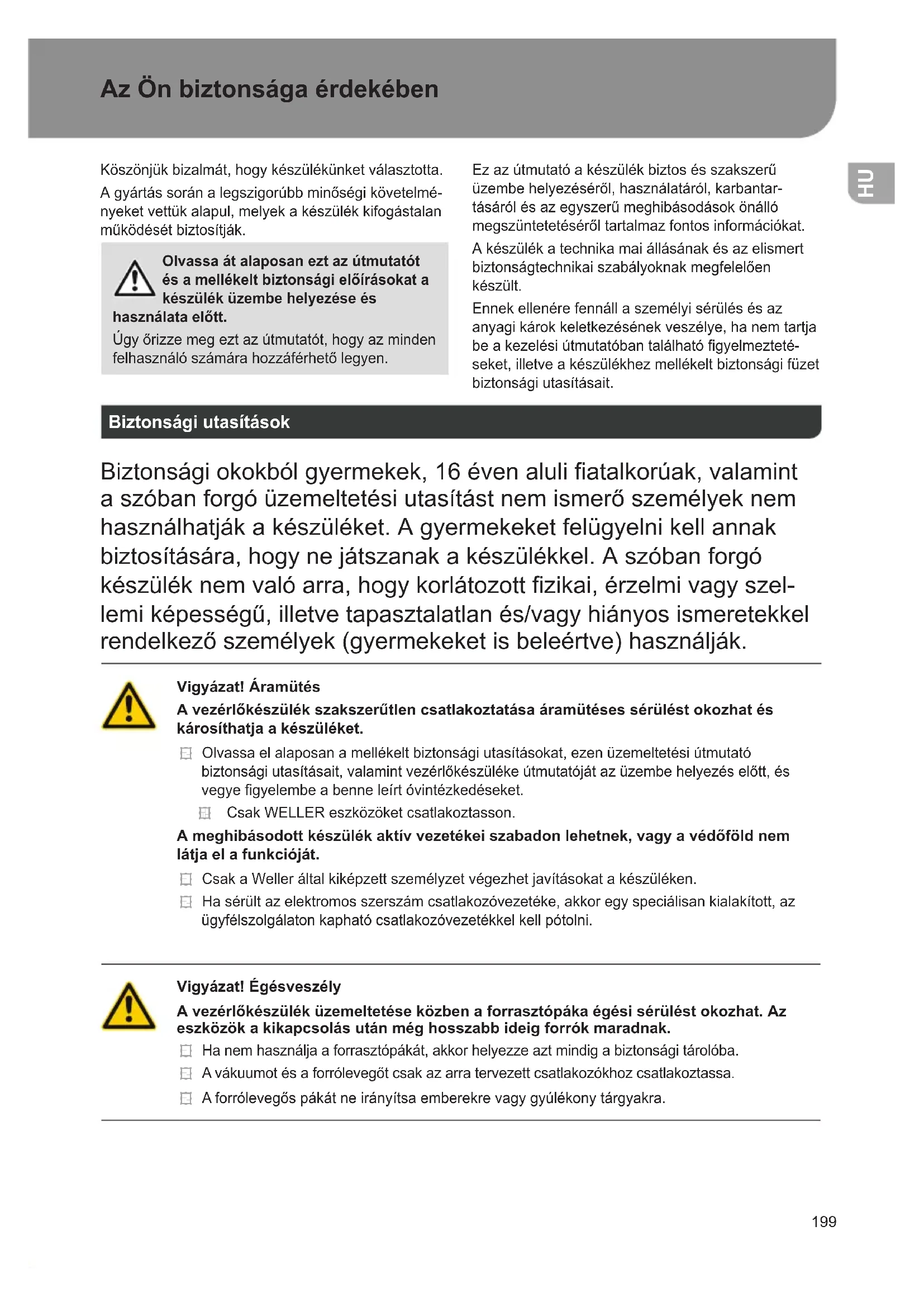 | Biztons e1g | Haszn e1ljon v e9d51keszty71t e9s v e9d51szem fcs f6t. Ker fclje a k f6zvetlen e9rintkez e9st a forr f3 fel fcsz ednekkel. |
