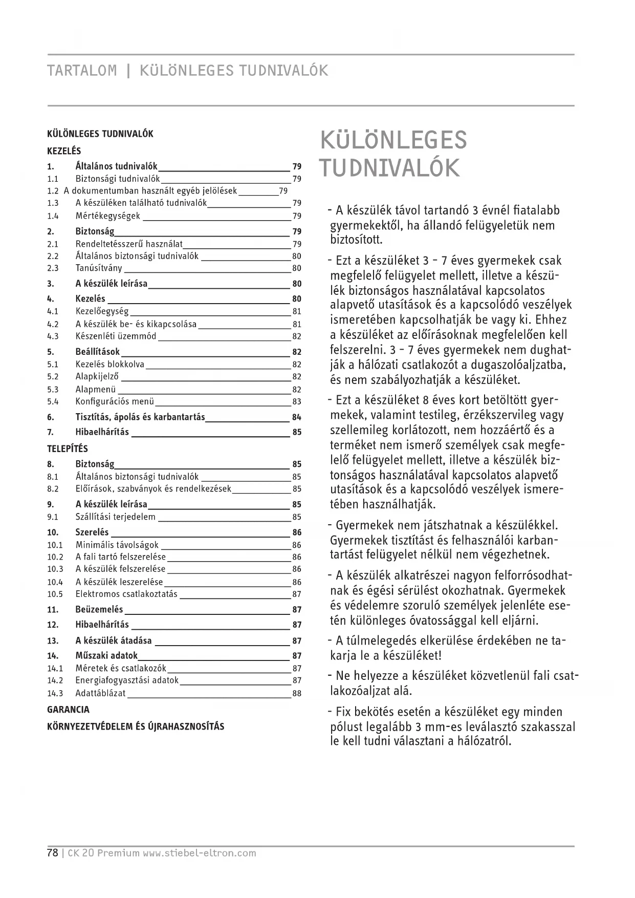 CK 20 Premium - Fűtés STIEBEL ELTRON - Ingyenes használati útmutató
