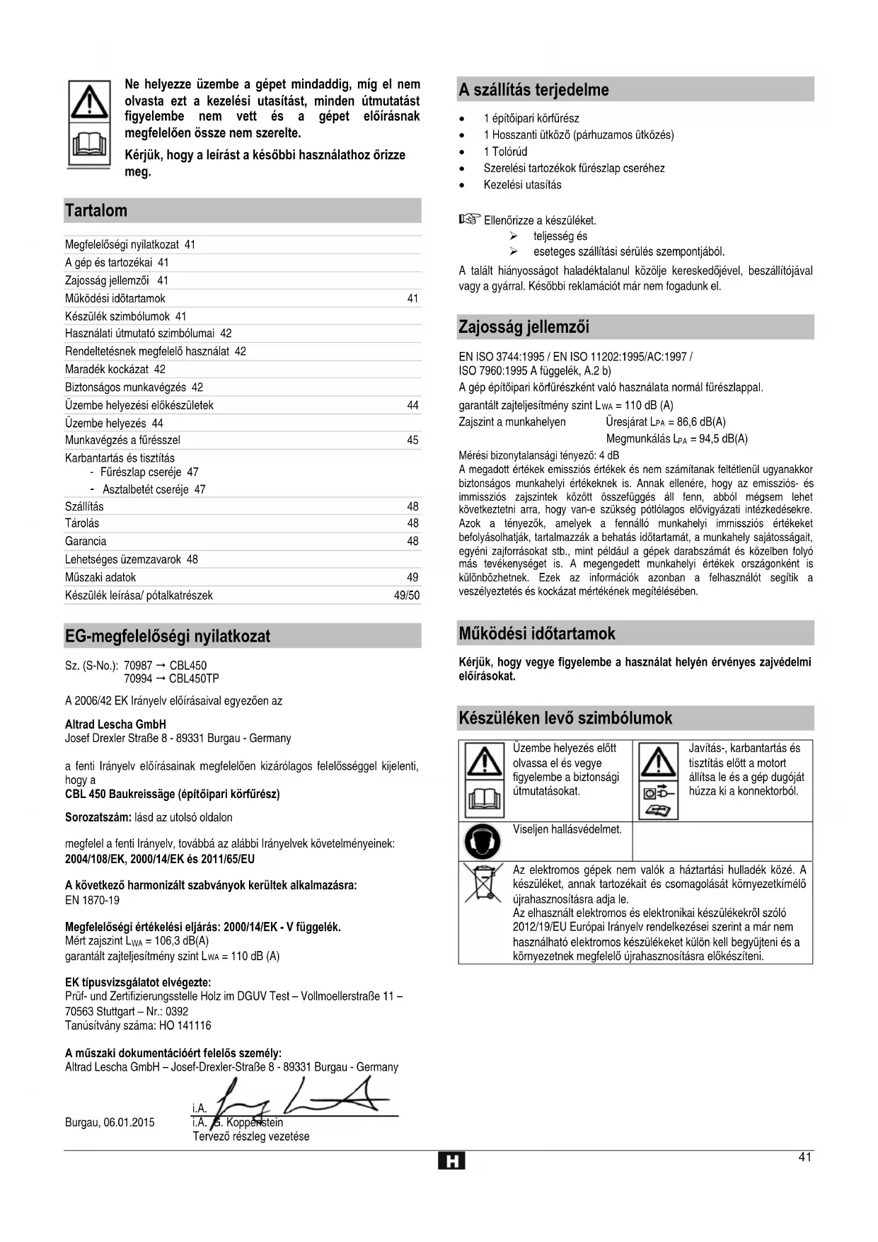 CBL 450 - Fűrész Lescha - Ingyenes használati útmutató