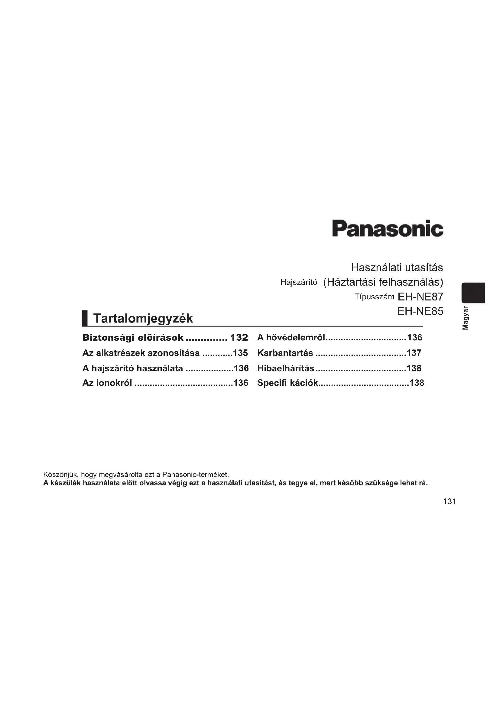 EHNE85 - Hajszárító PANASONIC - Ingyenes használati útmutató