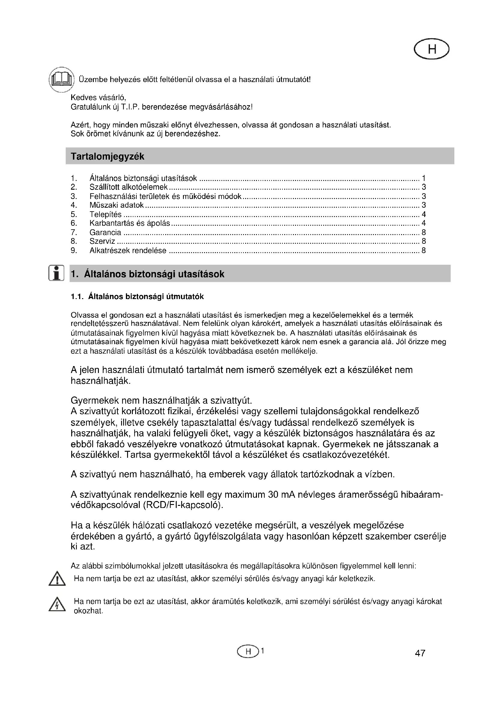 | Biztons e1g | Telep edt e9s sor e1n ker fclje a v edzzel val f3 kapcsolatot, karbantart e1s el51tt e1ramtalan edtson. |