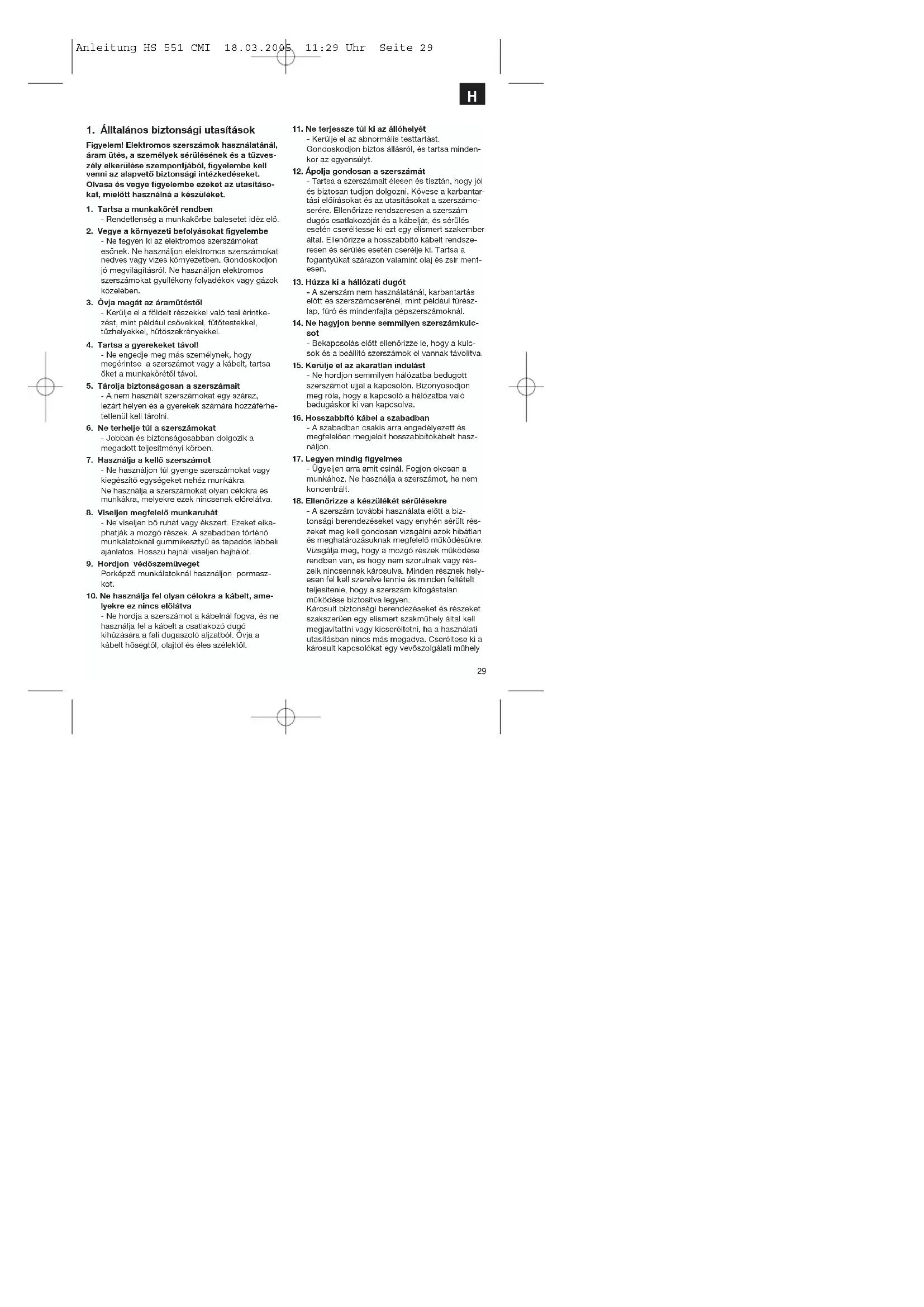 Találja meg az eszköz kézikönyvét ingyenesen HS 551 CMI PDF formátumban.