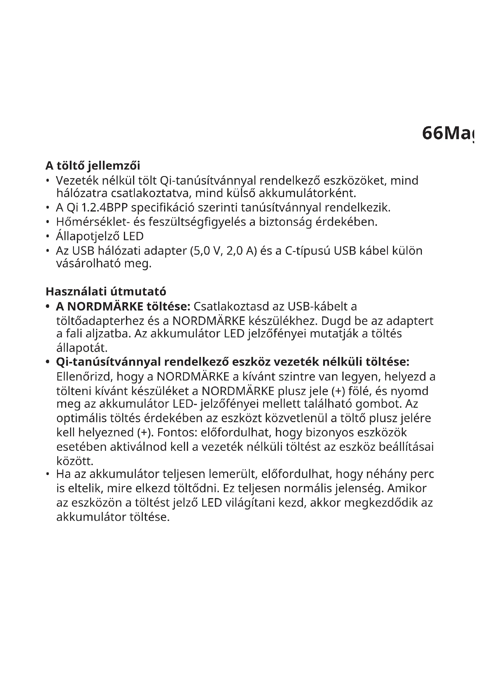 - Kizárólag Qi-tanúsítvánnyal rendelkező eszközök töltésére alkalmas.