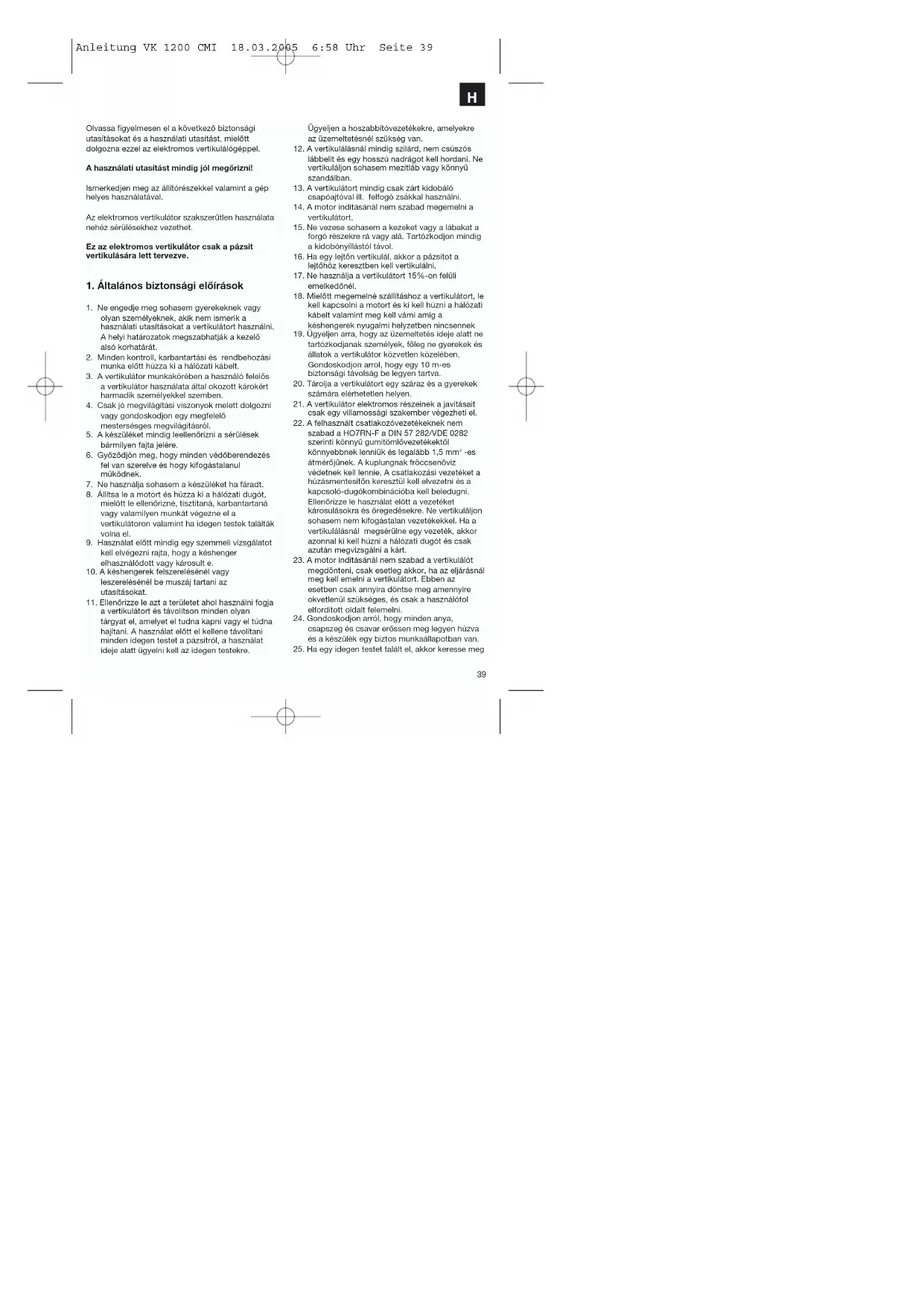 Olvassa figyvelmesen o kovetzbo zitbontsagi utasitsakot a hasznalati utasitaig, mielott dolgozna ezzel az elektromos vertikulajogepel.