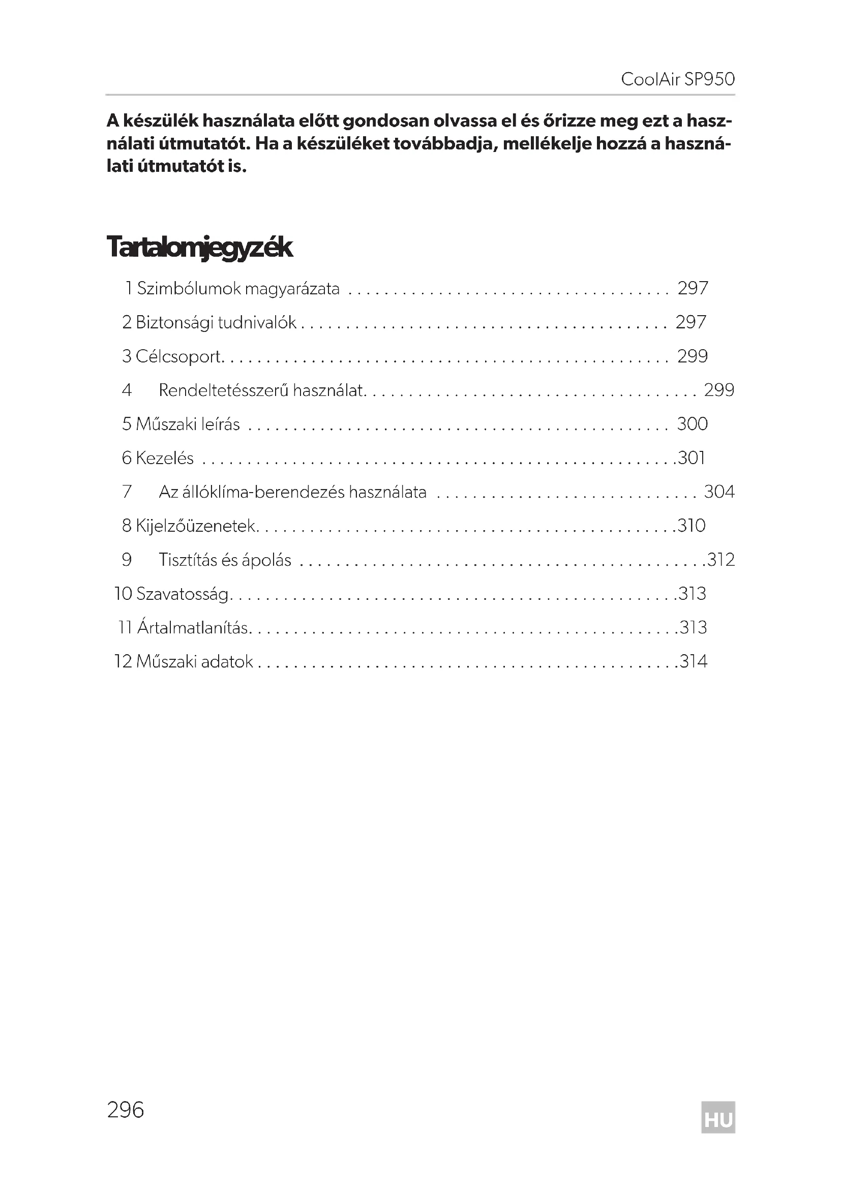 - 12 Műszaki adatok SP950-O-16s.book Seite 296 Freitag, 24. Februar 2017 4:26 16HU CoolAir SP950 Szimbólumok magyarázata p. 314