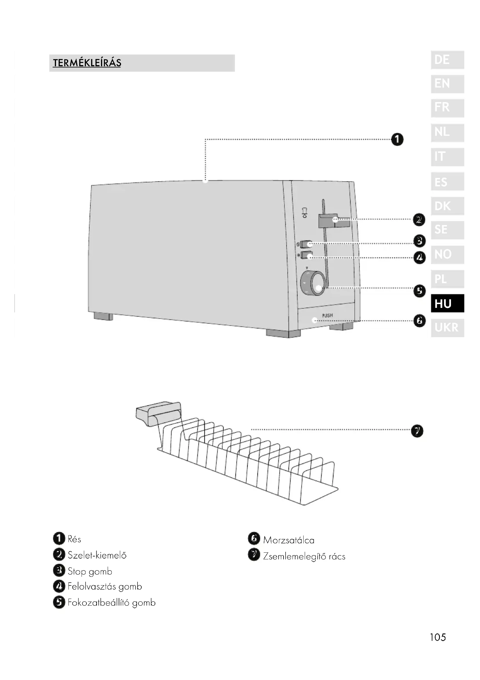 Ügyeljen arra, hogy az emelogomb mindig szabadon mozoghasson, különben a kenyépirító nem kapcsol ki automatikusan, mivel az emelogomb elektromágnesehen blokkolva van.