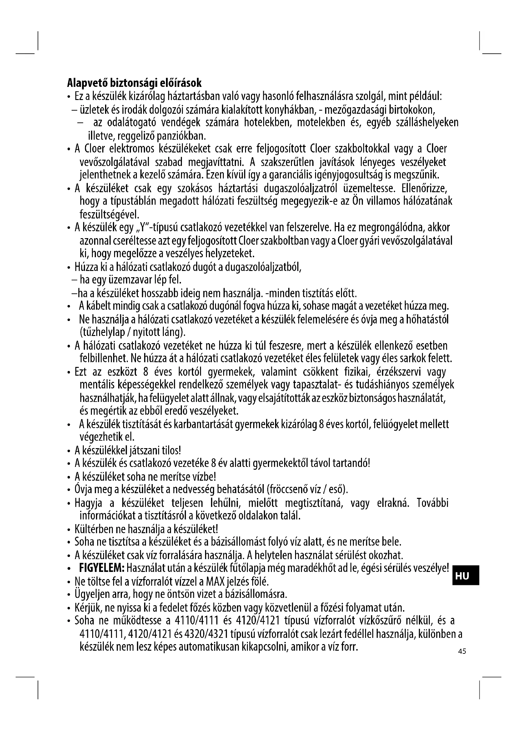 HASZNÁLATI ÚTMUTATÓ 4110 Cloer