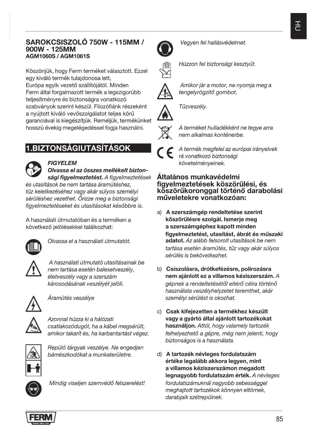 HASZNÁLATI ÚTMUTATÓ AGM1061S Ferm