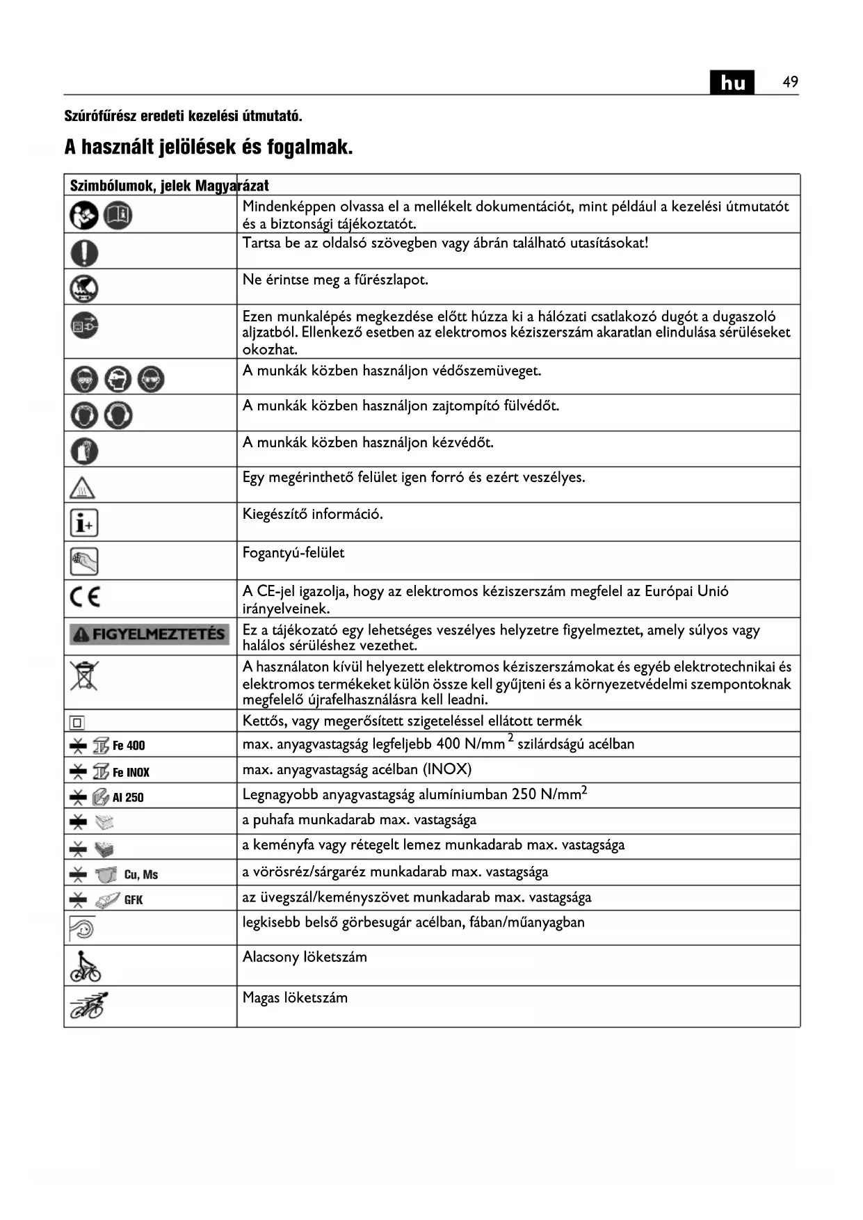 Ne használja ezt az elektromos kéziszerszámot, mielott gondosan el nem olvasta és meg nem értette ezt a kezelési utmutató és a mellekelt