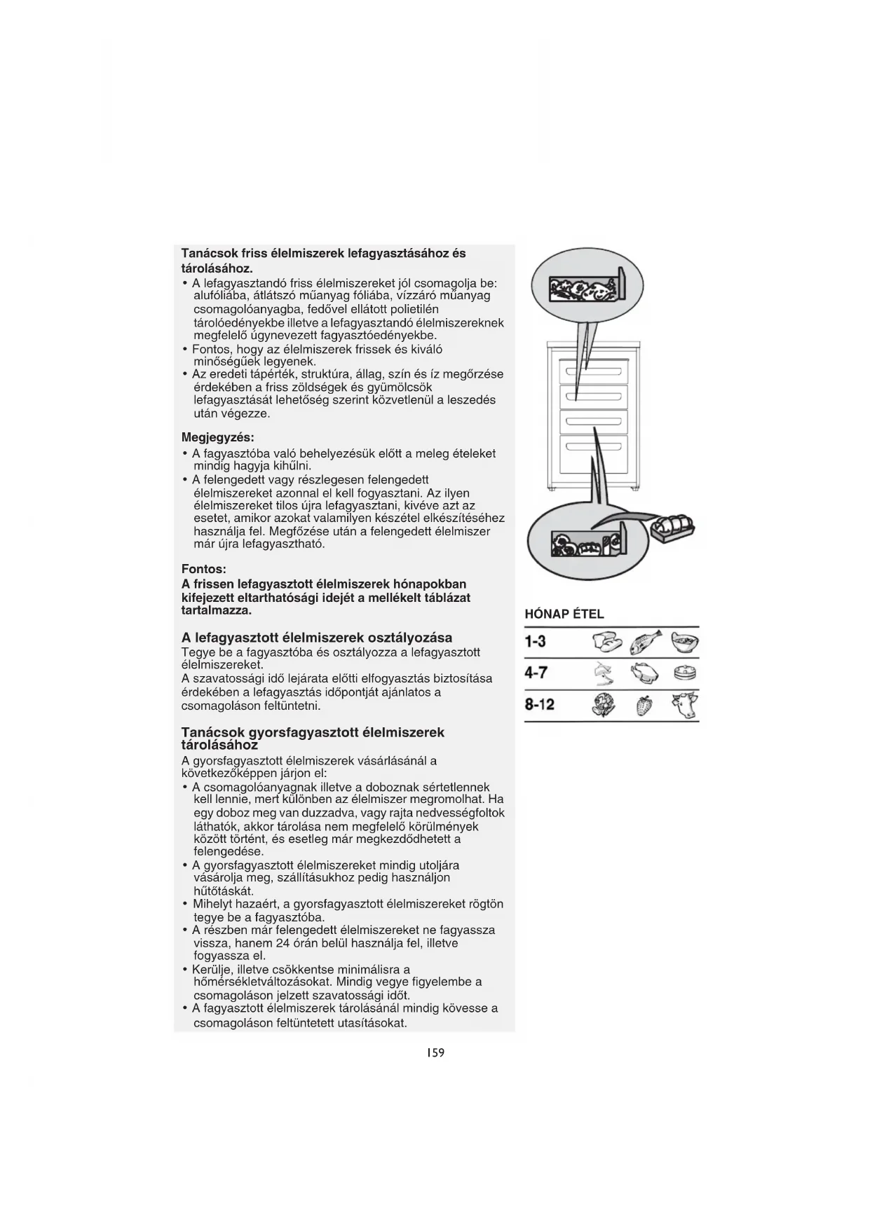7iUROyNRVDUDN 6]DEiO\R]yHJ\VpJHN 158Tanácsok friss élelmiszerek lefagyasztásához és tárolásához.