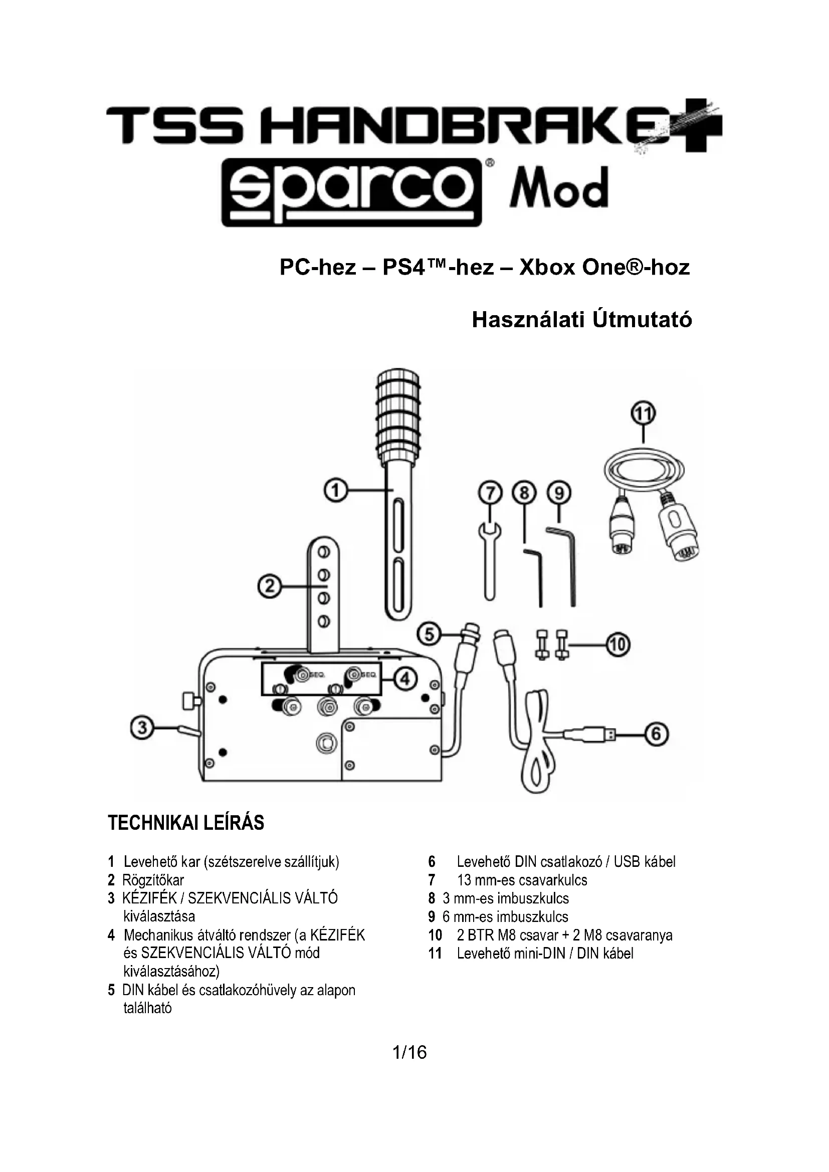 HASZNÁLATI ÚTMUTATÓ TSS Handbrake+ Sparco Mod THRUSTMASTER