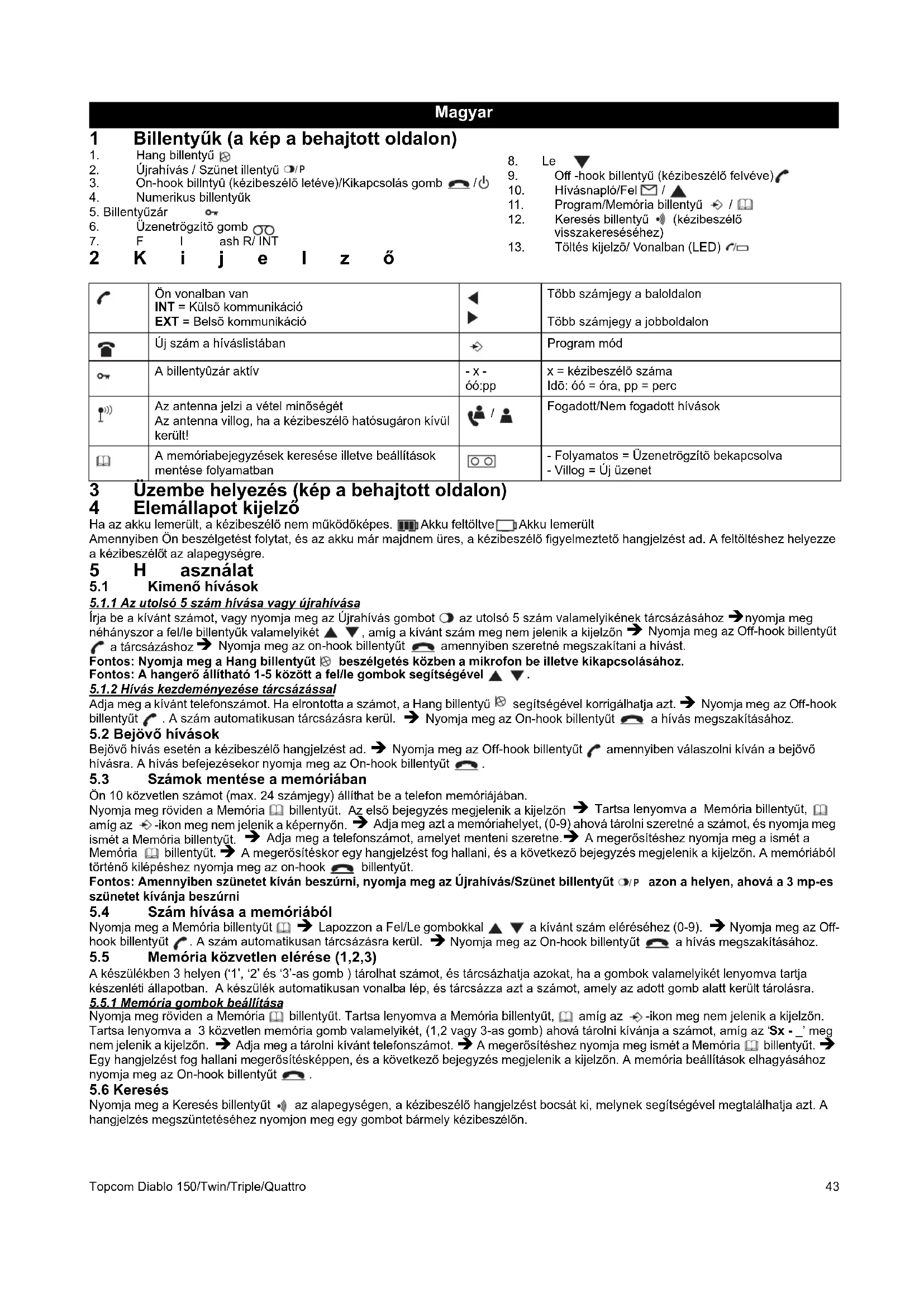 Diablo 151 - Telefon TOPCOM - Ingyenes használati útmutató