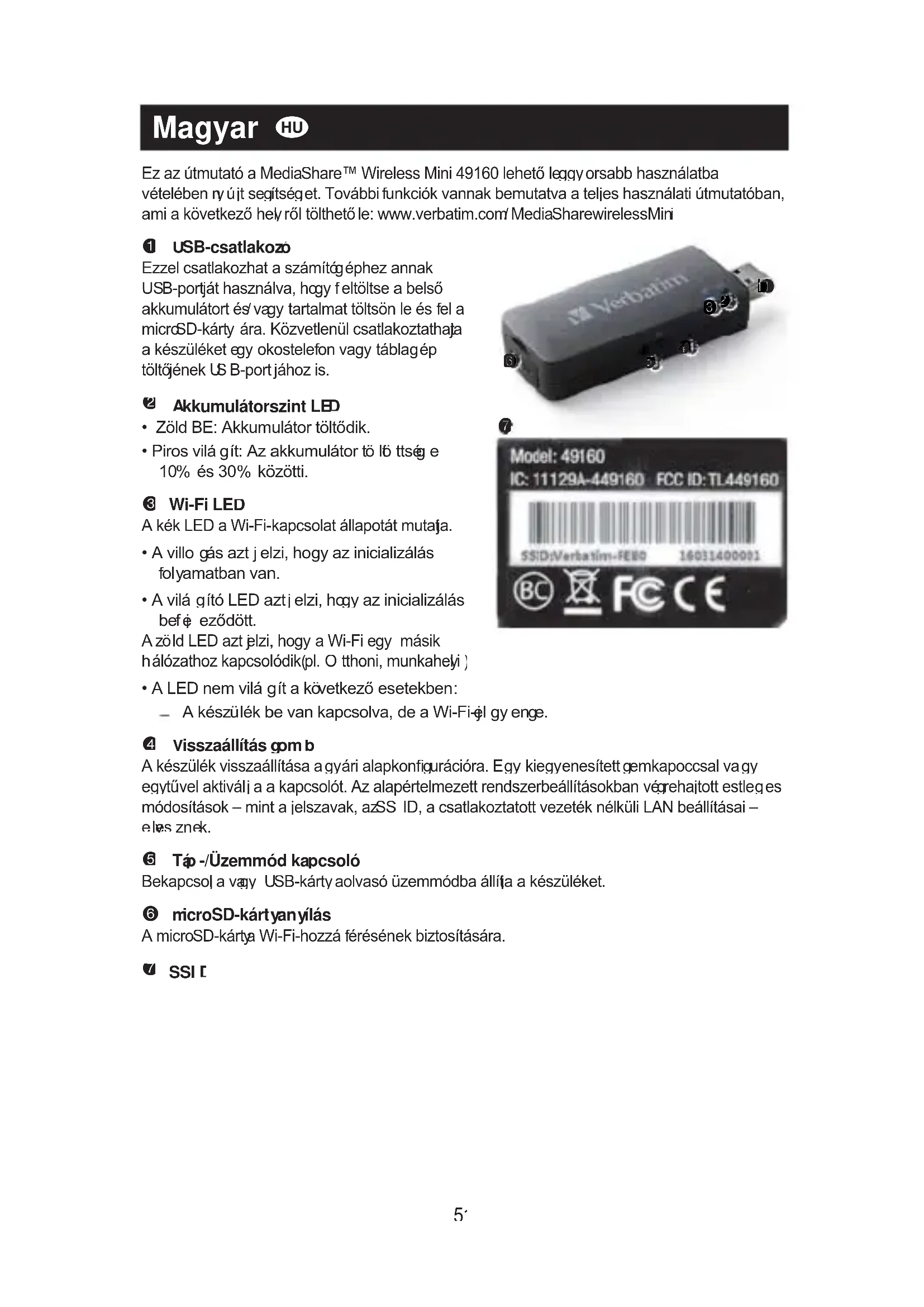 Találja meg az eszköz kézikönyvét ingyenesen MediaShare Mini VERBATIM PDF formátumban.