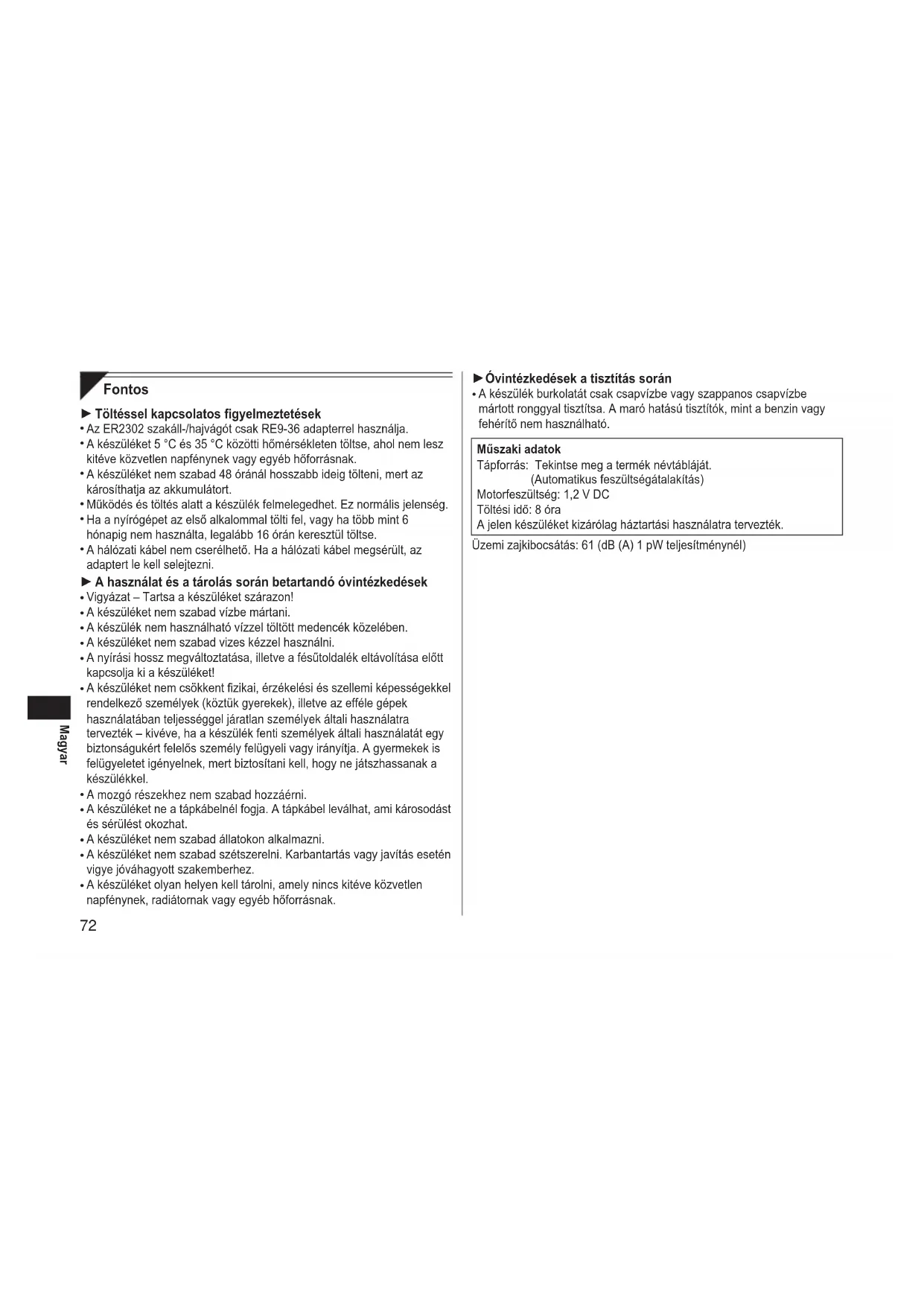 HASZNÁLATI ÚTMUTATÓ ER2302 PANASONIC