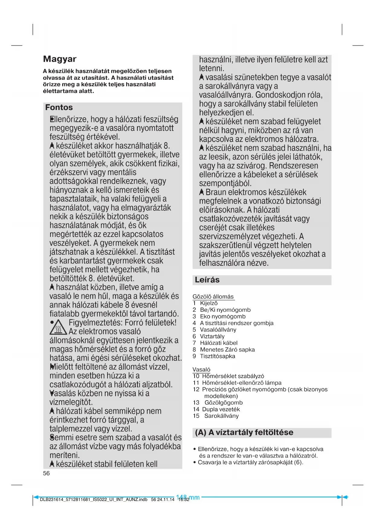 DLB231614_5712811681_IS5022_UI_INT_AUNZ.indb 55 24.11.14 16:32Magyar A készülék használatát megelőzően teljesen olvassa át az utasítást. A használati utasítást őrizze meg a készülék teljes használati élettartama alatt. Fontos