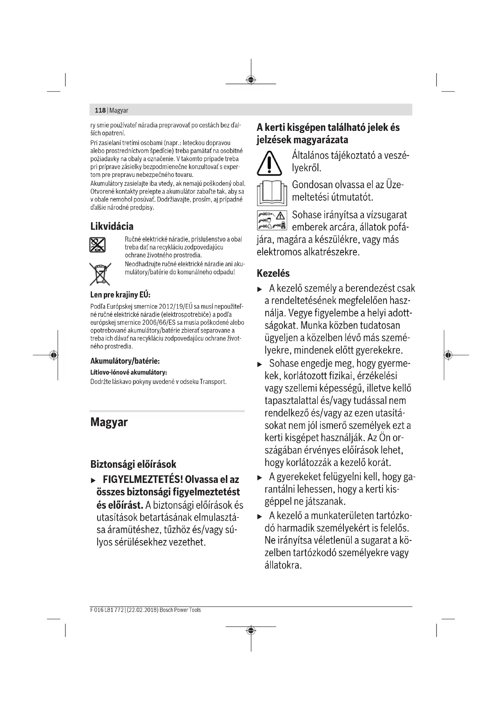 Az elhasznalt villamos es elektronikus berendezesekre vonatkoz 2012/19/EU europai iranyelvnek es az elromlott vagy elhasznalt akkumulatorokra/elemekre vonatkoz 2006/66/EK europai iranyelvnek megfeleloen a mar nem hasznalhato akkumulatorokat/elemeket kilon ossze keg gyujteni e a kornyezetvedelmi szempontoknak megfeleloen kell ujrafelhasznalasra leadni.