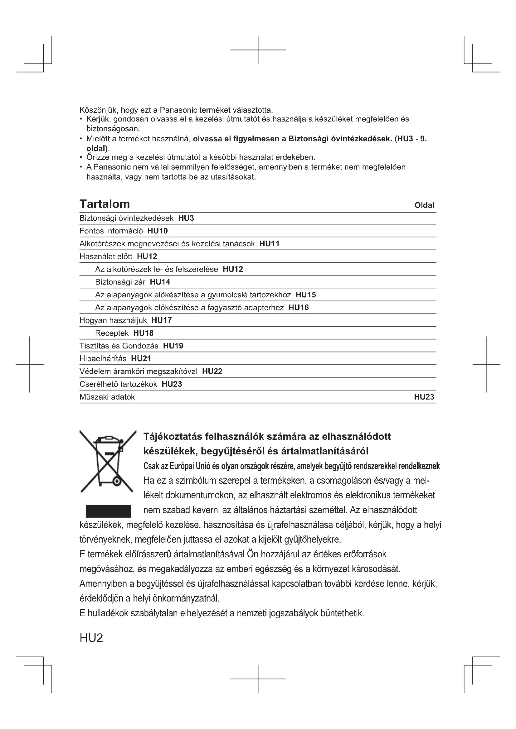 Tajekoztatás felhasznalok szárára az elhasznalódott keszülekek, begyüjtéseröl és artalmatlanitásaról