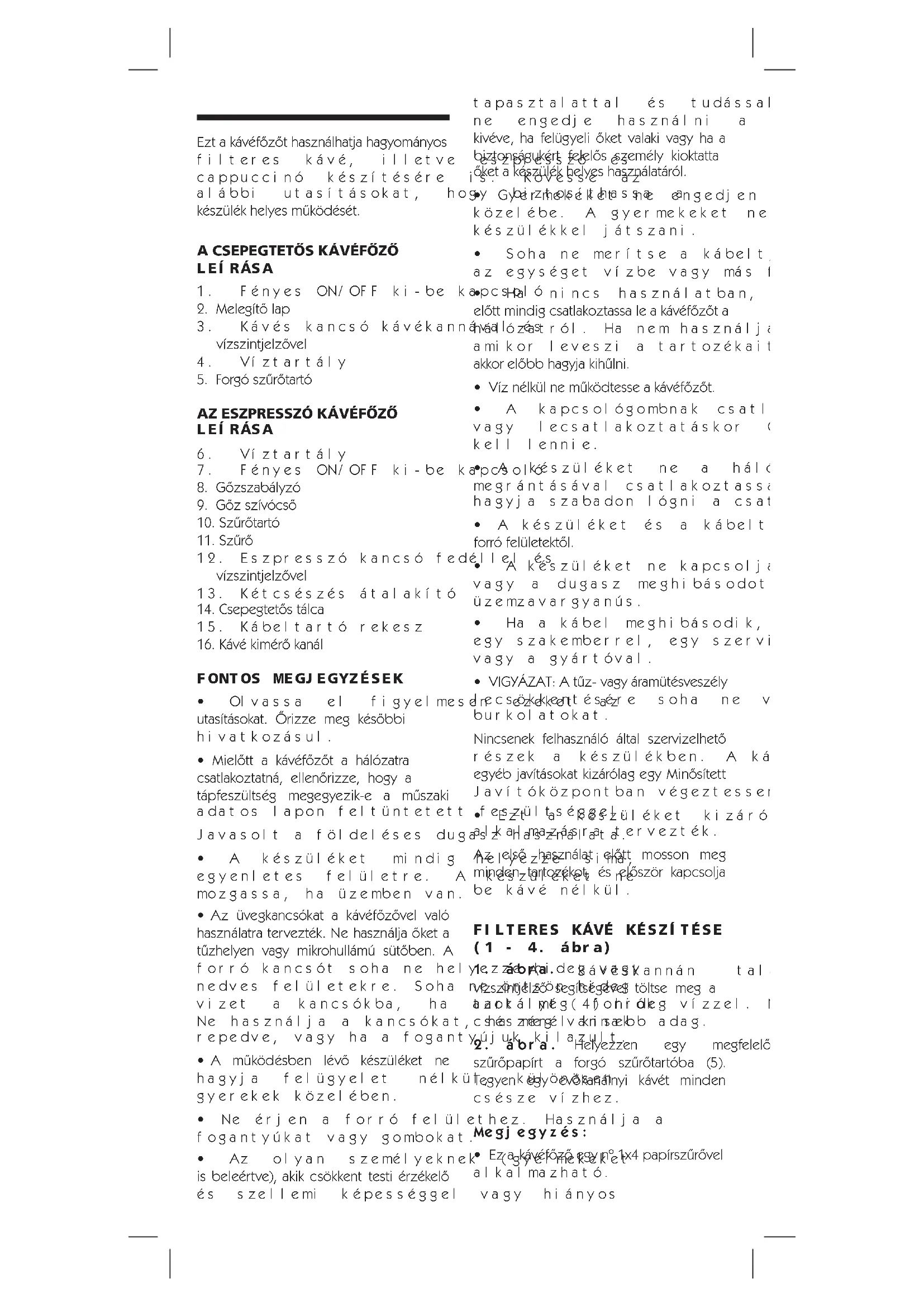 - Ezt a készüléket kizárólag háztartási alkalmazásra tervezték. Az első használat előtt mosson meg minden tartozékot, és először kapcsolja be kávé nélkül. FILTERES KÁVÉ KÉSZÍTÉSE (1 - 4. ábra)