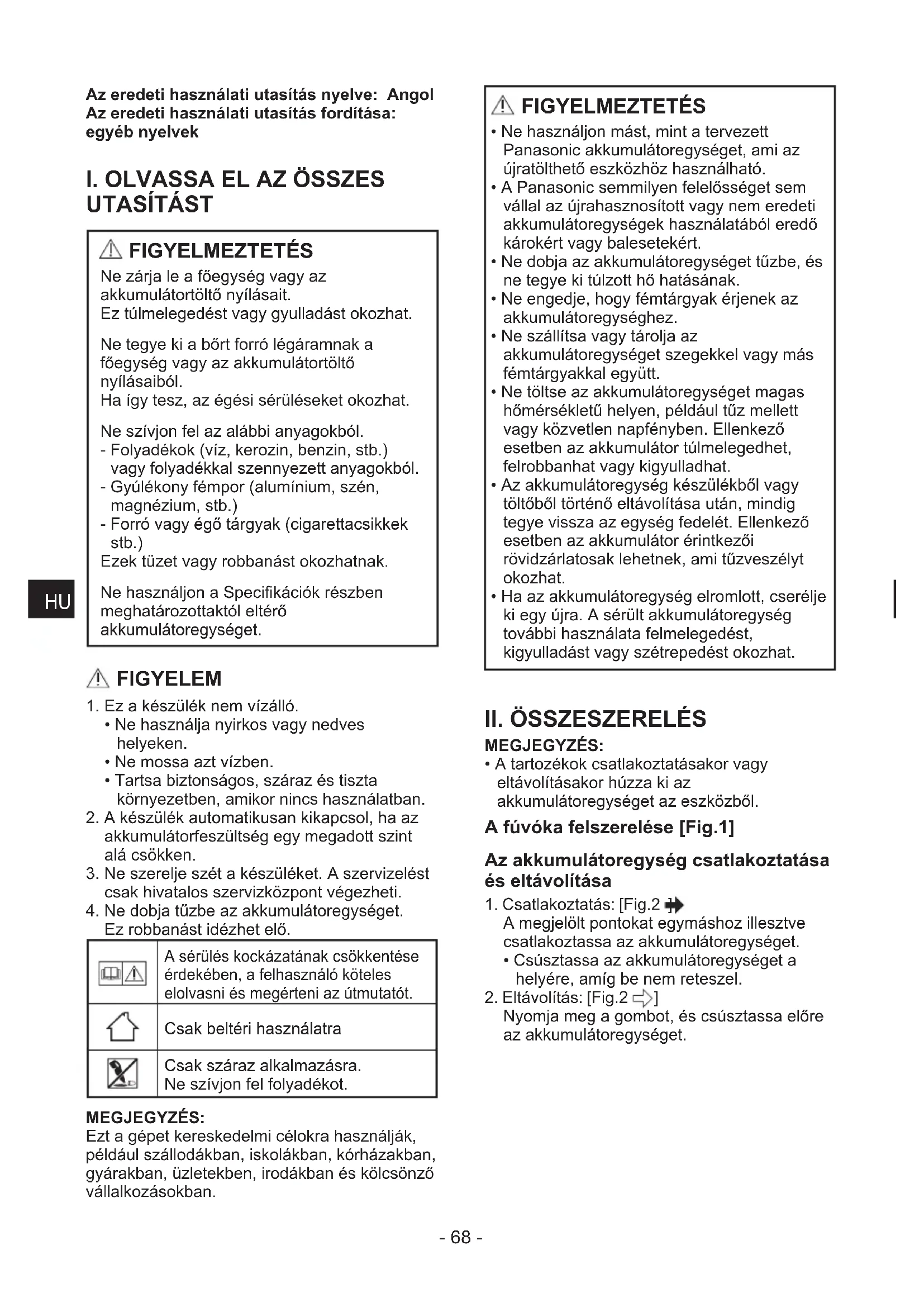 - Csak Panasonic Li-ion akkumulatoregység használjon az elektramos eszközökhöz (csak DC 14,4 V / DC 18 V feszültseg).