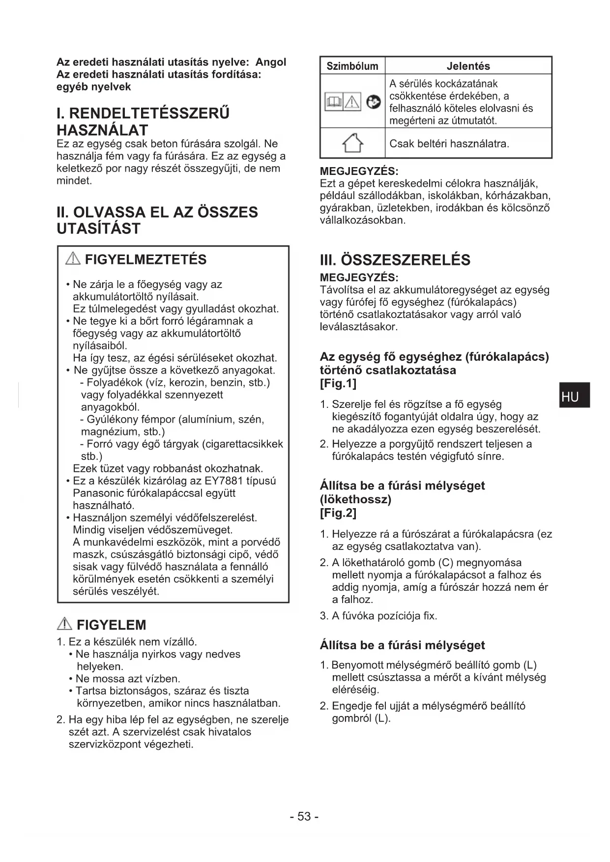 - Ez a készülék kizárólag az EY7881 típusú Panasonic fúrókalapáccsal együtt használható.