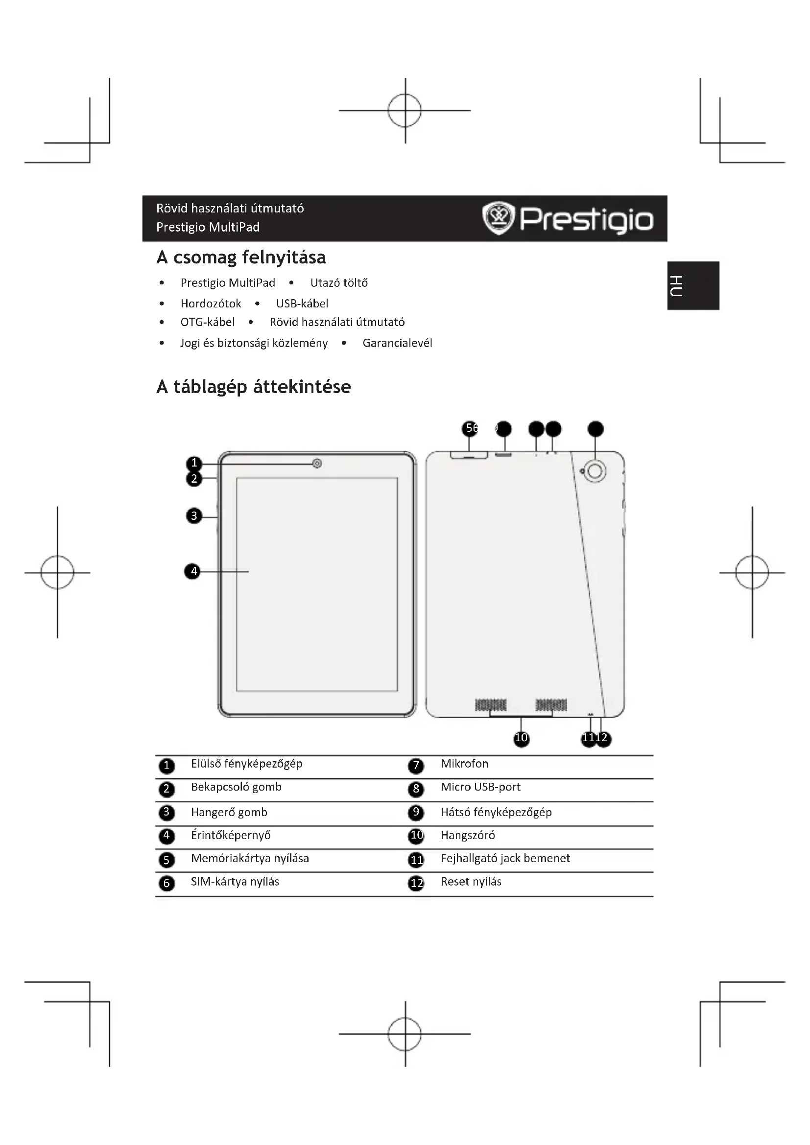 ResetnyílásHU Rövid használati útmutató Prestigio MultiPad Gombok Gomb Definíció A gomb funkciója Bekapcsolás