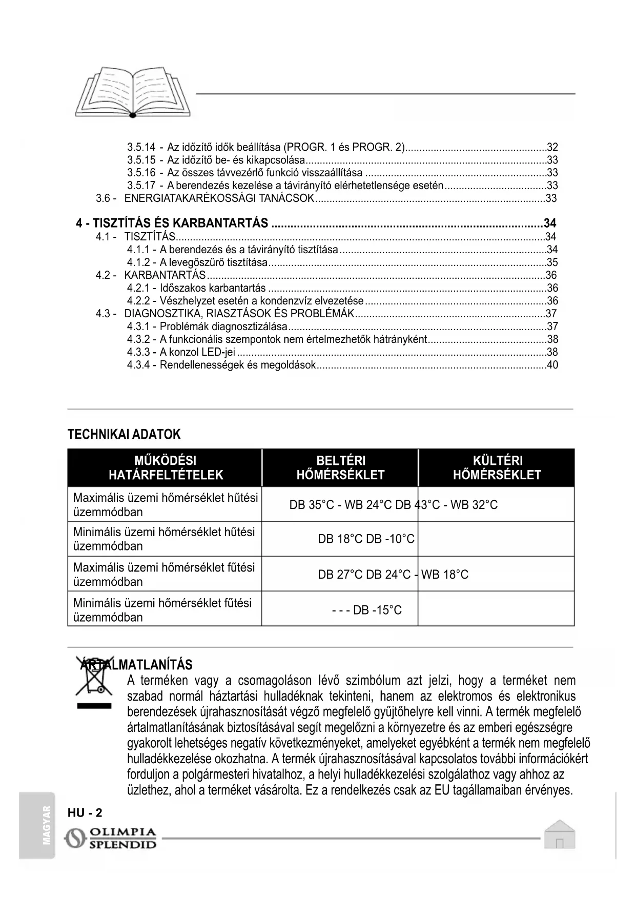 3.5.12 - Az időzítő beállítása .....................................................................................................31 3.5.13 - Az óra és az időzítő beállítása ......................................................................................31HU - 2 MAGYAR
