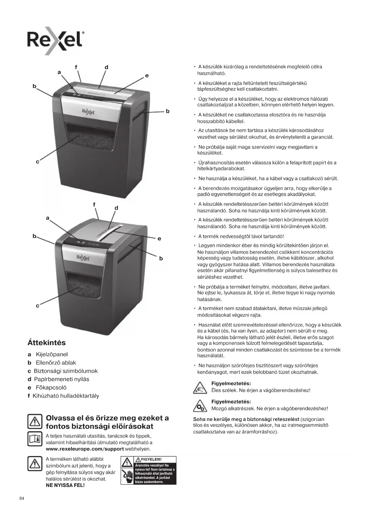 - Ne használjon szórófejes tisztítószert vagy szórófejes kenőanyagot, mert ezek belobbanó tüzet okozhatnak. Olvassa el és őrizze meg ezeket a fontos biztonsági előírásokat A teljes használati utasítás, tanácsok és tippek, valamint hibaelhárítási útmutató megtalálható a www.rexeleurope.com/support webhelyen. A terméken látható alábbi szimbólum azt jelenti, hogy a gép felnyitása súlyos vagy akár halálos sérülést is okozhat. NE NYISSA FEL! Áramütés veszélye! Ne nyissa fel! Nem tartalmaz a felhasználó által javítható alkatrészeket. A javítást bízza szakemberre. FIGYELEM!