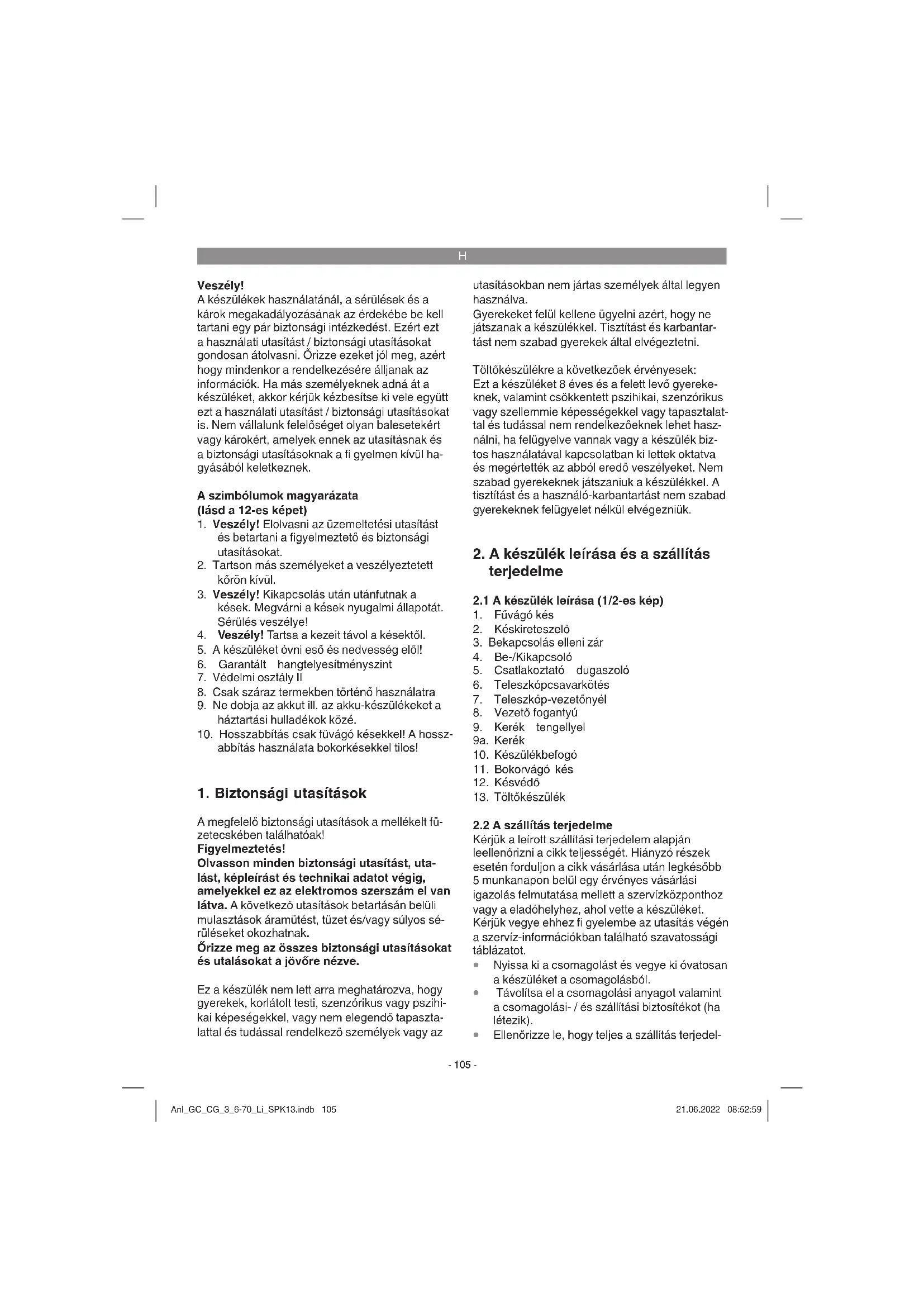Ellenőrizze le, hogy teljes a szállítás terjedel- Anl_GC_CG_3_6-70_Li_SPK13.indb 105Anl_GC_CG_3_6-70_Li_SPK13.indb 105 21.06.2022 08:52:5921.06.2022 08:52:59H