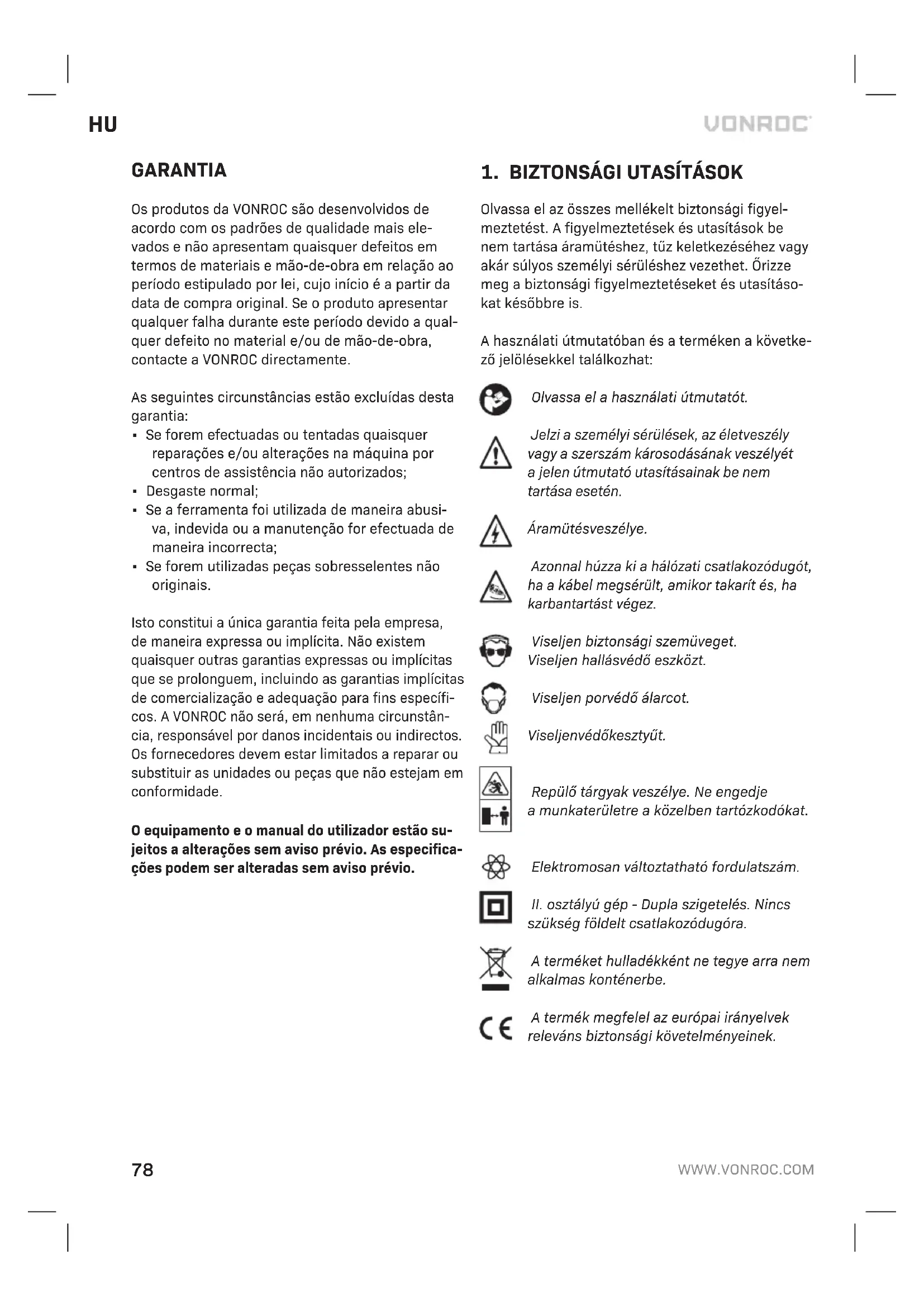 AVONROC termékei alegmagasabb minőségi normák szerint készülnek, és az eredeti vásárlás napjától számított, törvényileg előírt időtartamig garantáljuk, hogy anyag- és gyártási hibáktól men- tesen fognak működni. Ha aterméken ezen időszak alatt bármilyen hiba jelentkezik anyag- és/vagy gyártási hiba miatt, kérjük, forduljon közvetlenül aVONROC vállalathoz. Aszavatosság nem érvényes akövetkező körülmé- nyek egyikére sem: