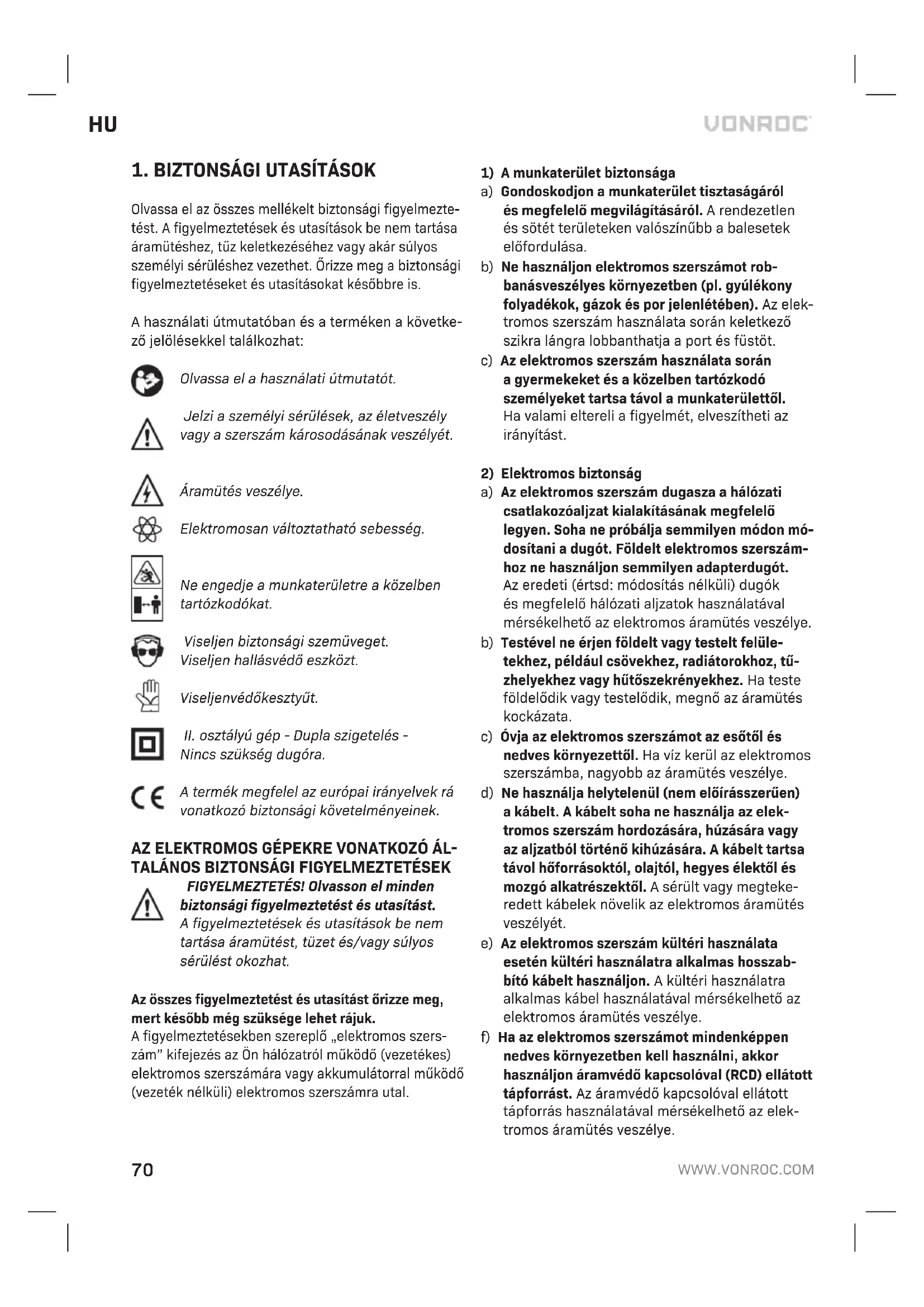 HASZNÁLATI ÚTMUTATÓ PM501AC Vonroc