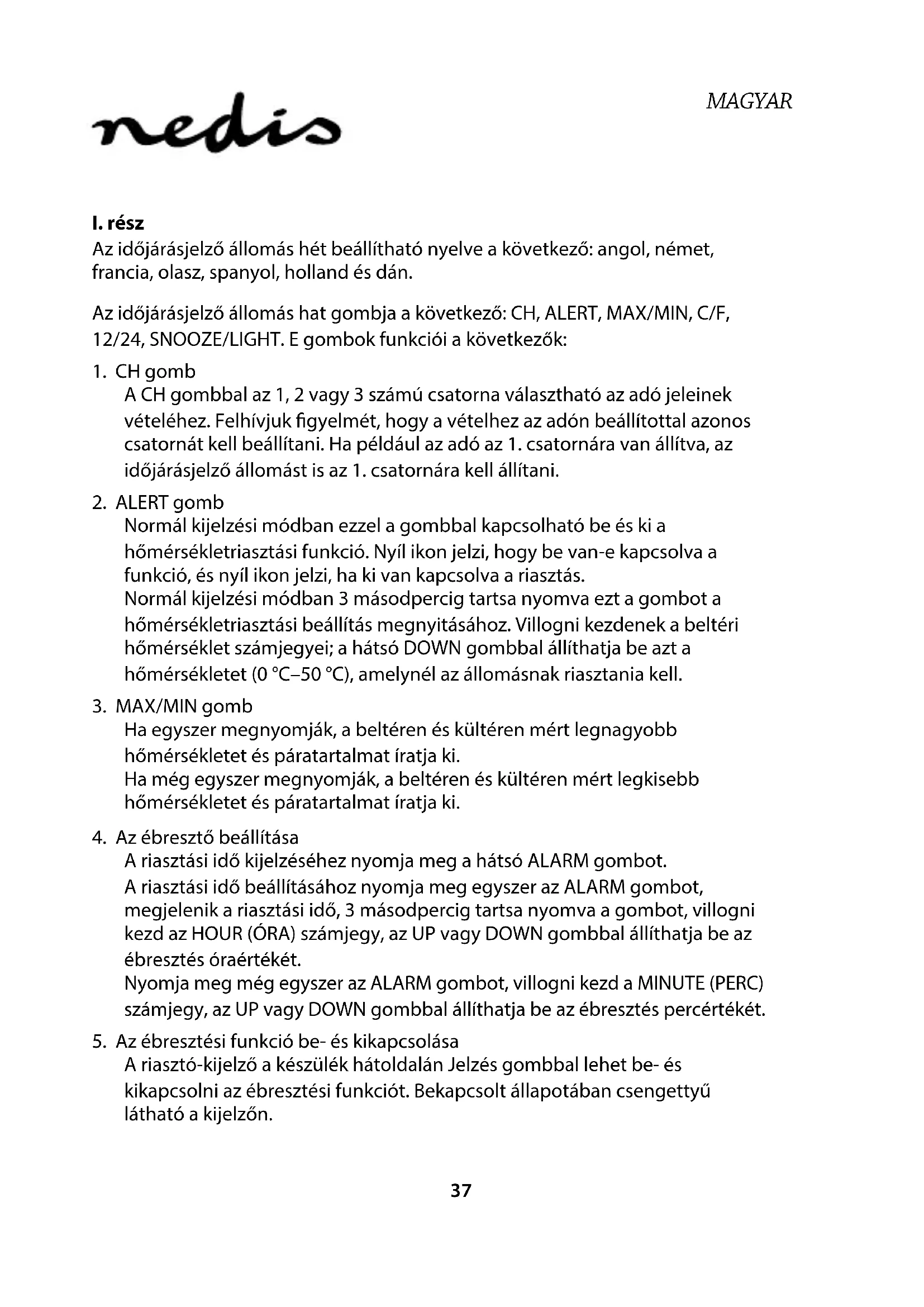 Töltse le az útmutatót a következőhöz Időjárásállomás PDF formátumban ingyenesen! Találja meg kézikönyvét WEST203WT - NEDIS és vegye vissza elektronikus eszközét a kezébe. Ezen az oldalon közzé van téve az eszköze használatához szükséges összes dokumentum. WEST203WT márka NEDIS.