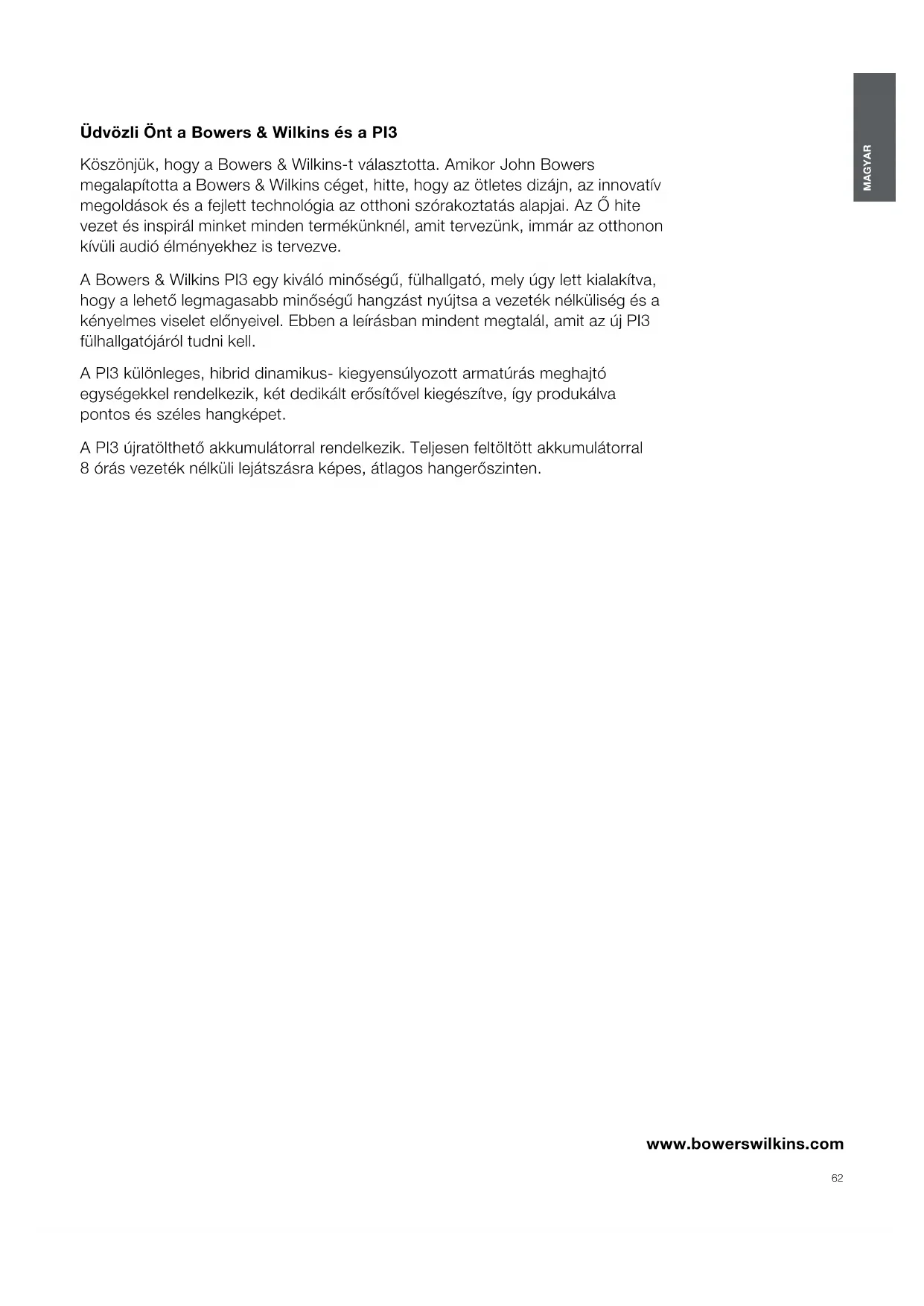 HASZNÁLATI ÚTMUTATÓ PI3 BOWERS & WILKINS