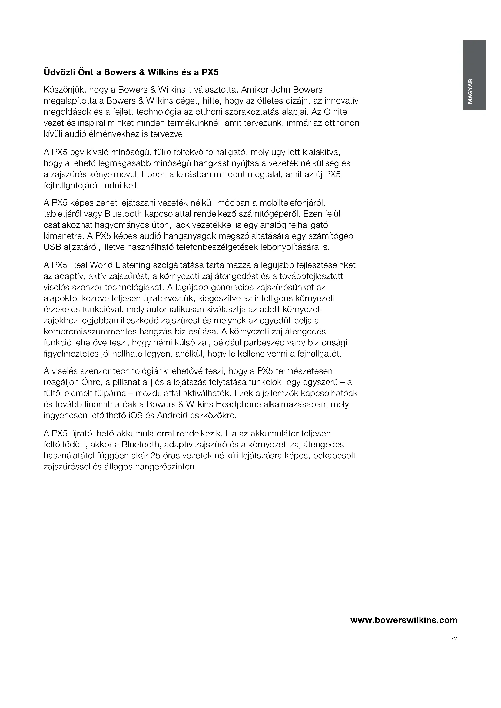HASZNÁLATI ÚTMUTATÓ PX5 BOWERS & WILKINS